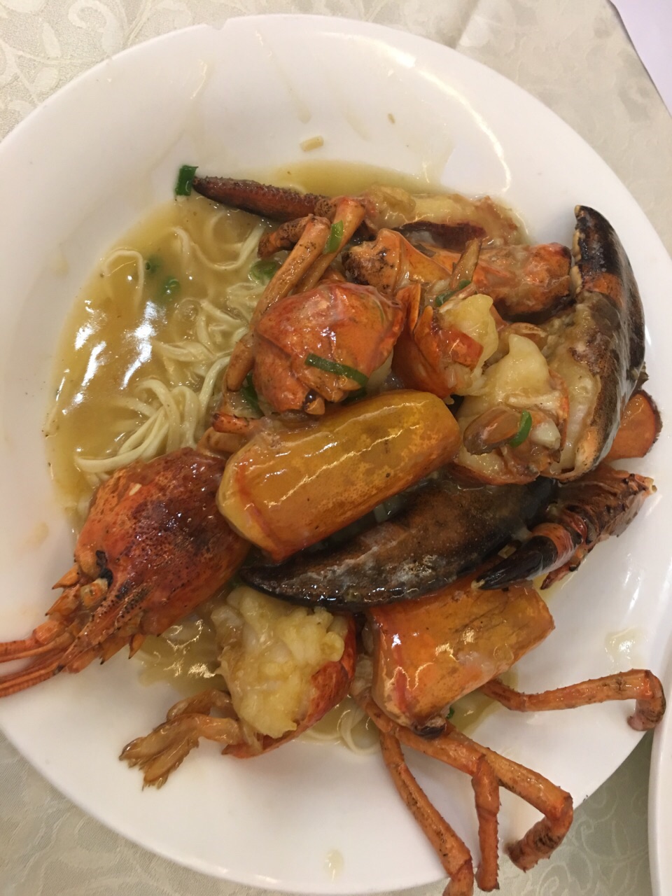 住在楼上,晚上即在此就餐,点了龙虾和杂菌青菜,味道清淡可口,龙虾还是很新鲜的,肉鲜嫩,面条口感尤好住在楼上,晚上即在此就餐,点了龙虾和杂菌青菜,味道清淡可口,龙虾还是很新鲜的,肉鲜嫩,面条口感尤好。饭馆环境也不错,只是服务员似乎不会说普通话,沟通上有些问题,如果英语好的话可更易交流。