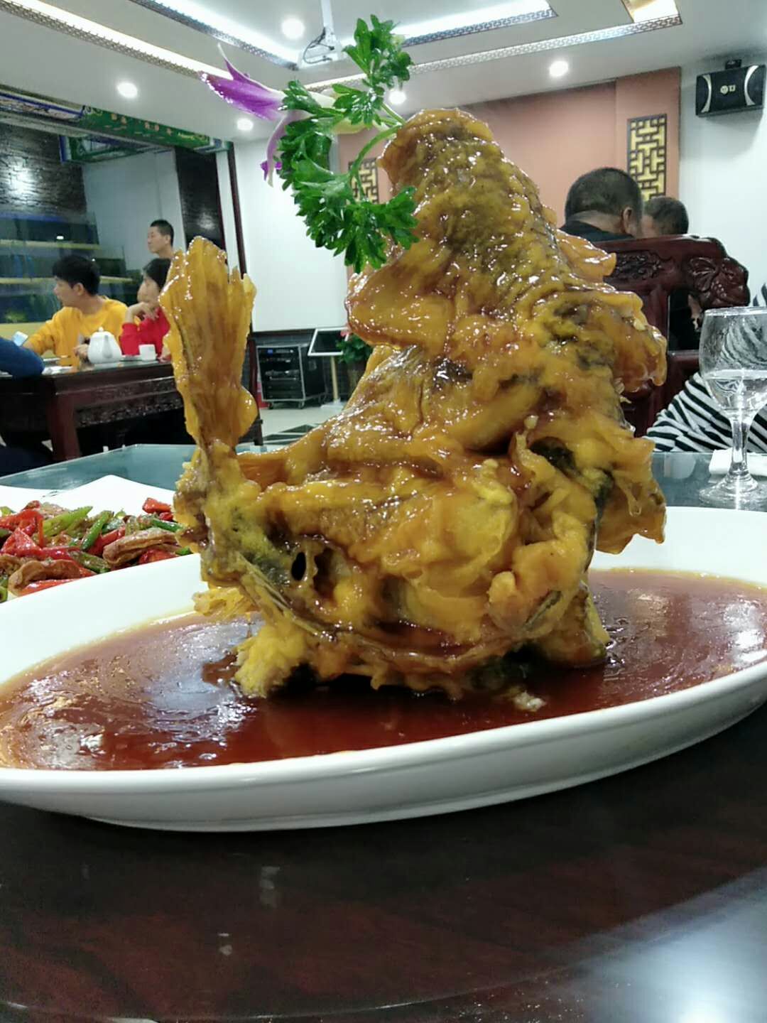 黄河鲤鱼非常漂亮非常好吃,貌似每桌必点菜。离着景区大明湖非常近,门脸不大,人流不小离着景区大明湖非常近,门脸不大,人流不小。我们到达时候晚上7点等座半小时。没有车位,周边相对不错的饭馆。黄河鲤鱼非常漂亮非常好吃,貌似每桌必点菜。