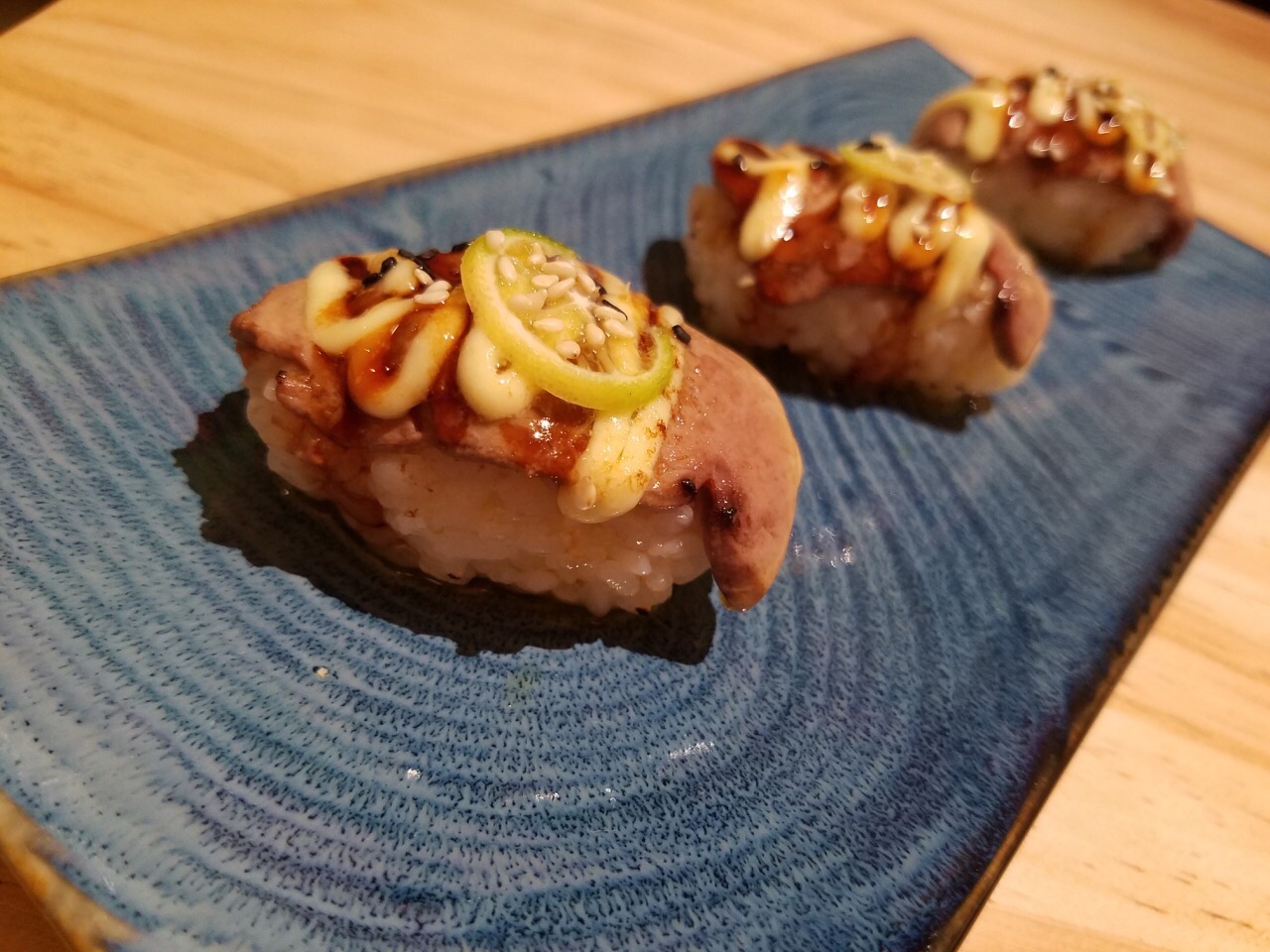 所谓“板前”指的是站在料理台后面,在客人面前料理的厨师。当他们与你面对面当场献艺时,你可以慢慢观察他们的一招一式,每个人的不同经历和性格,都会像一本书一样展现在你的眼前,可以聊天也可以单纯的感受美食,这是其他料理完全体会不到的一种“享受”。 #五品刺身拼盘,三文鱼超厚切,应该算是我吃过最厚的,意外的是完全一点也不腥,有足够自信才敢这样切。 #烤海鳗,相比于之前吃的鳗鱼,海鳗油脂不会那么多,吃多也不会反胃。 #土瓶蒸,这汤现做的,要等待比较长时间,建议先点。 #火炙鹅肝寿司,鹅肝爱好者表示这种搭配很合适,完全不需要什么去腥解腻的物质辅助。 #三文鱼炒饭,必须要赞一个,不仅好吃,分量也很足,价格还和随便一家定食餐厅持平。窃喜。 #酒煮牛舌,牛舌很嫩, 红酒不抢味。 完完全全的一顿日料大餐,环境好,洗手间亦非常干净,适合约客户或者情侣约会。 服务也不错,因为单点的有点久,还主动过来推荐。好评!