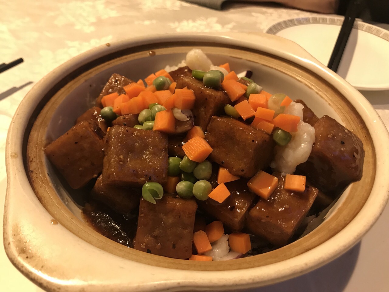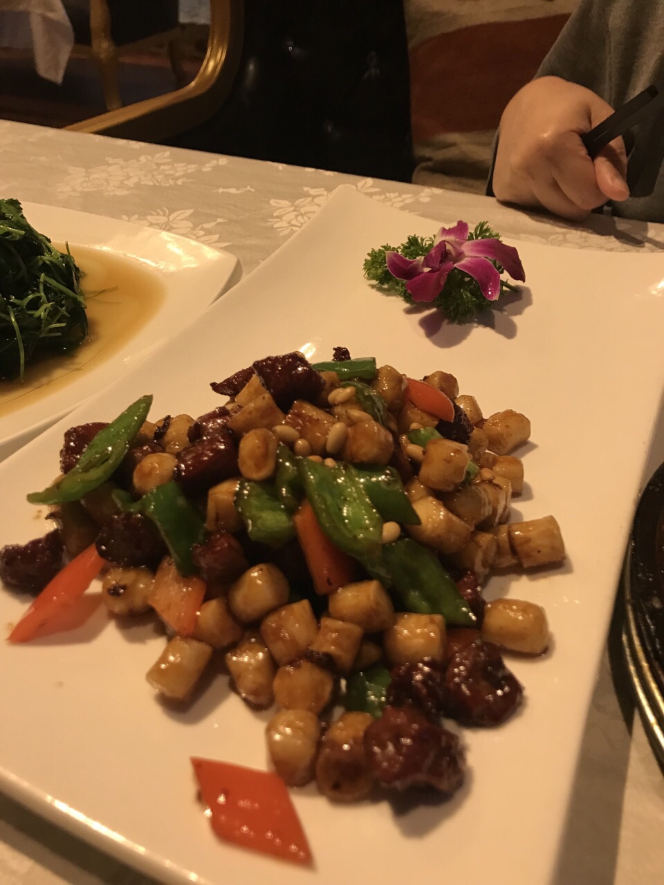 家门口最喜欢吃的就是果林酒家了。 「铁板蒜蓉虾」以前叫铁板煎虾,感觉差别不大,虾还是很新鲜的,味道不错。上桌的时候还在沸腾。 「石锅芋头」芋头是炸过的,里面很糯,撒的青豆跟胡萝卜丁有点生硬,还撒了虾仁哦,味道不错。 「松仁年糕牛柳粒」最喜欢里面的年糕粒,外面带一点脆,黑胡椒也不会太咸。牛柳也不错,肉质好。 「酒香草头」量大,就是草头有时候有点老。 这里停车免费,还是不错的。
