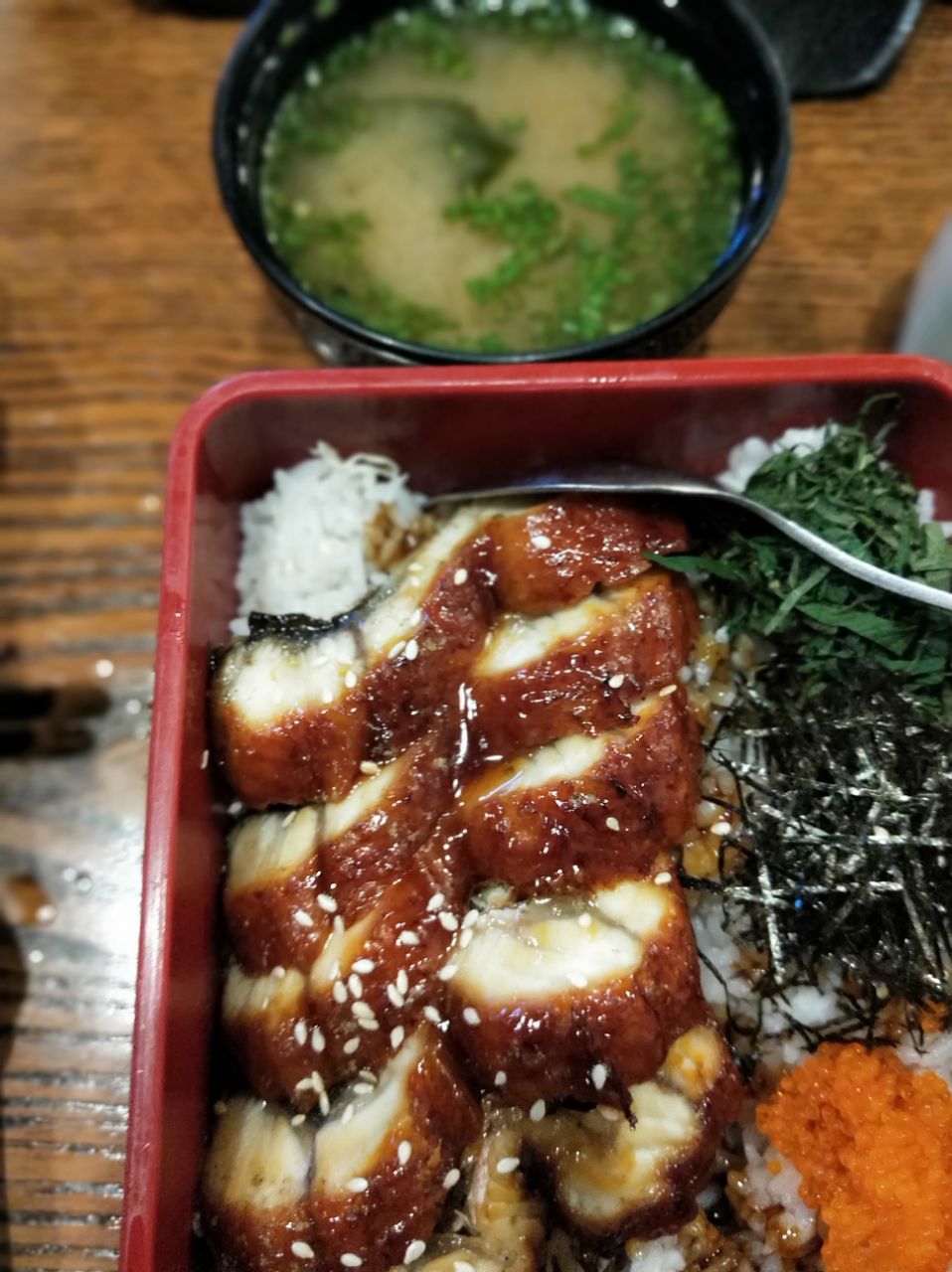 这家日料店很难找,在龙湖天地这里,还好我们多预留了半个小时的时间,还有就是打电话咨询店家,如何才能到达,店家地态度超级的好,不厌其烦的一次次帮我指路。 个人非常喜欢这里的1、海鲜纳豆(小粒的纳豆+满满的海鲜粒,好吃到停不下来)。2、寿喜锅(牛肉的量很多,各种蔬菜豆芽豆腐金针菇,每一样都很美味,越煮越好吃)。3、鳗鱼饭+味增汤(铺满的鳗鱼中段,鳗鱼汁拌饭,甜甜的味道,满嘴的幸福感)。4、日式煎饺(里面有好多的香菇粒,很特别的味道)。5、奶酪蟹宝(满满的蟹肉+浓浓的芝士)。 这里的服务也是超一流的,绝对值得推荐给大家。