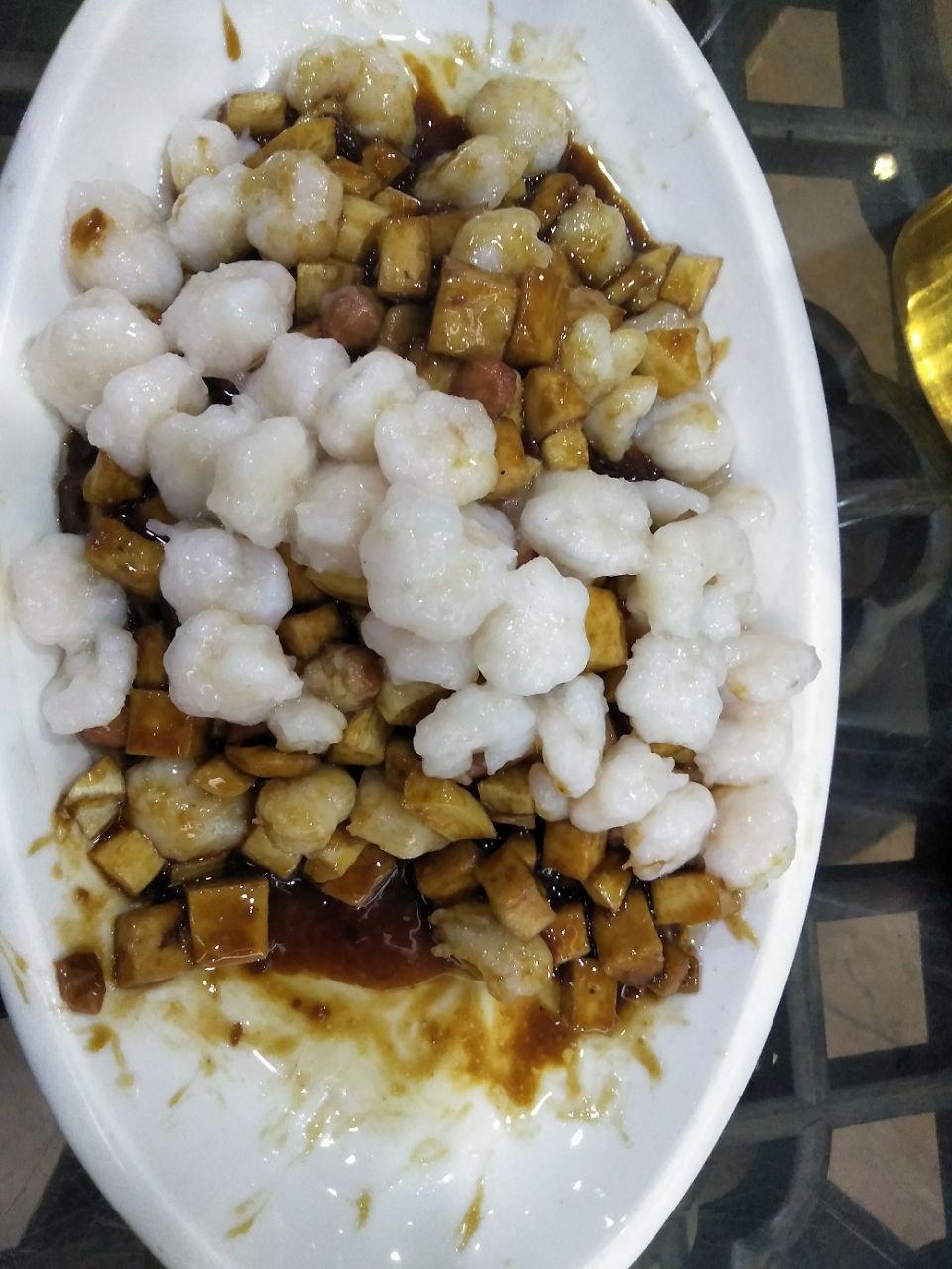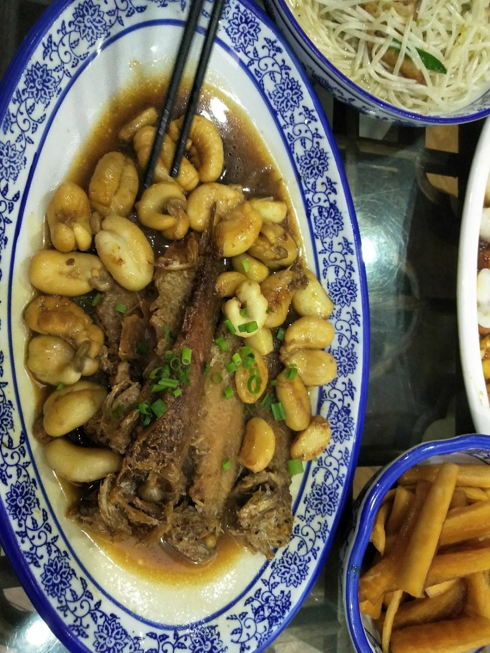 有机会下次再去品尝其他的菜肴咯。除了酱丁虾仁有点咸之外,其余三个菜味道都很好墨鱼蛋炒黄鱼。酱丁虾仁。绿豆芽炒油条。萝卜干儿。除了酱丁虾仁有点咸之外,其余三个菜味道都很好。有机会下次再去品尝其他的菜肴咯。