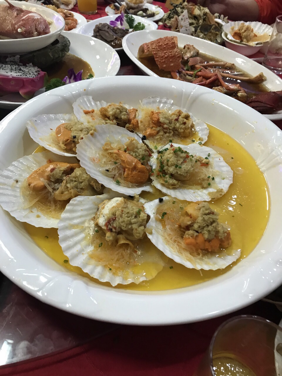 食材都非常新鲜,大闸蟹轻轻一吸能吸出蟹脚肉,扇贝特别大只都带厚厚的黄,烤羊排很嫩没有膻味,白斩...