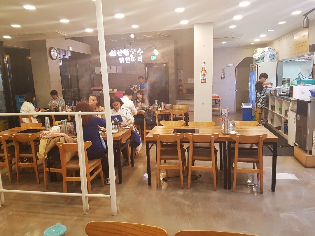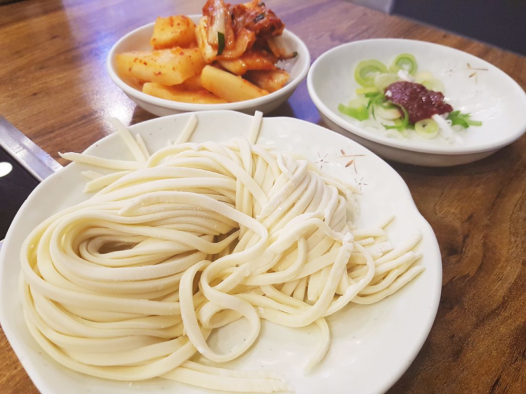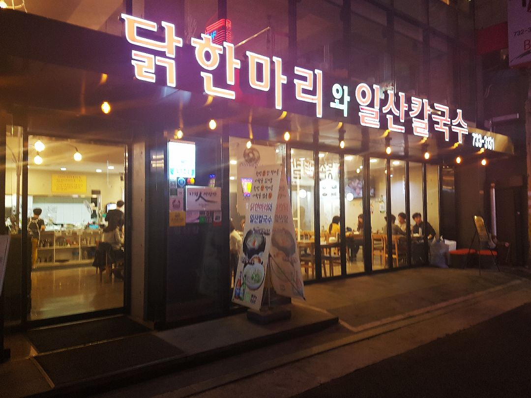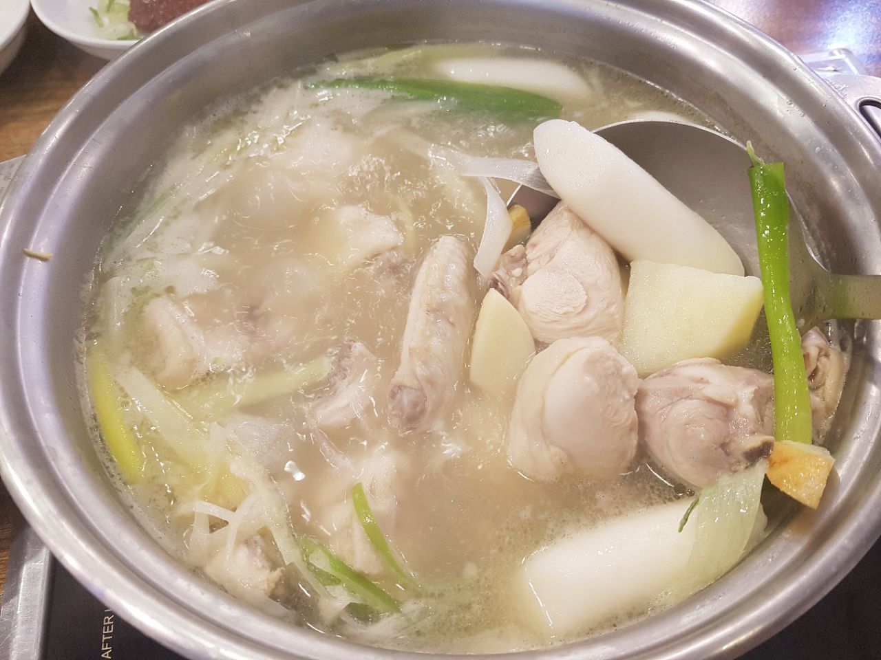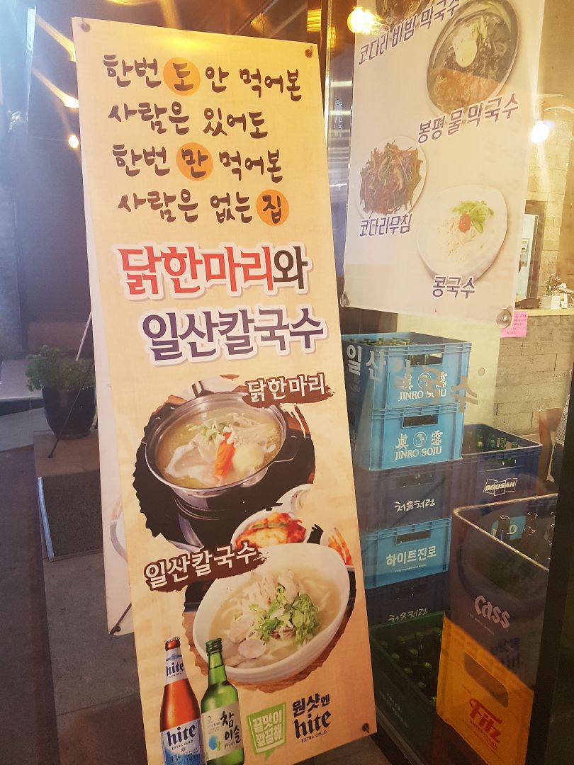 现在这个季节吃一只鸡,就是两个字:舒坦。我们公司女生多,每次聚餐都会来这儿呢。量很足,价钱也实惠。鲜嫩的鸡肉,年糕和土豆,种类也是很丰富滴。鸡肉沾着秘制的酱料绝配,吃完鸡肉下手擀面,作为山东人的俺对面食真的超级爱,萝卜泡菜也下饭, 脆脆的。饭后去实在撑的慌,就去附近唱歌,因为位于钟路的美食街,地理位置便捷。