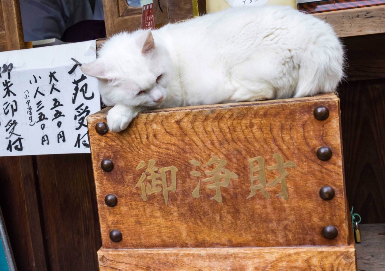 另外一个名字:“猫神社”。这些猫咪最初都是周围的野猫,它们发现进入梅宫大社并不会被驱赶,托猫咪们的福,人气变得更加旺盛。神社本身祈愿不要门票,但是有一个很漂亮的花园,里面有水菖蒲和绣球花,550日币一个人。
