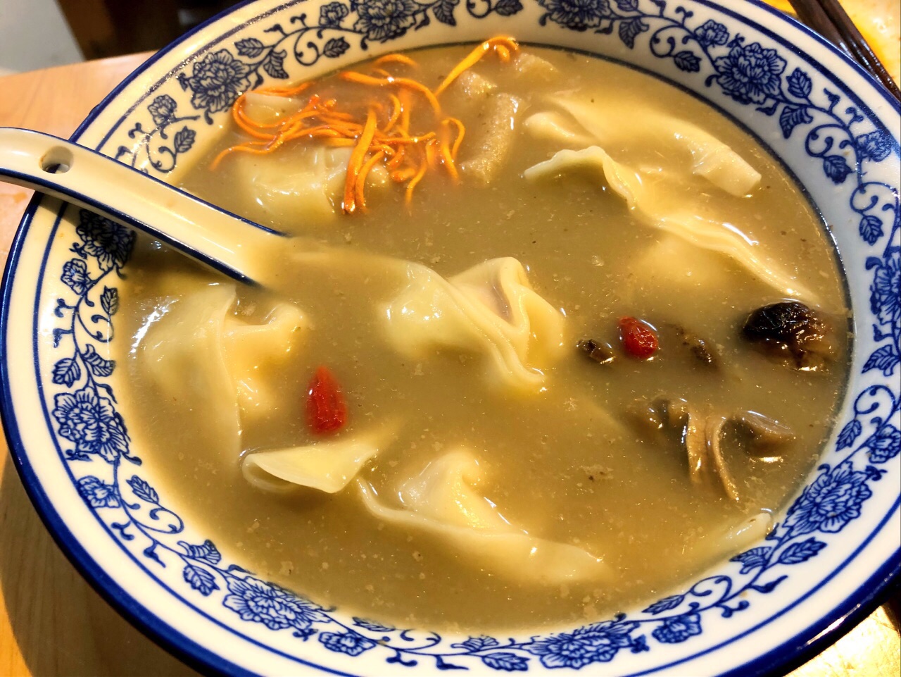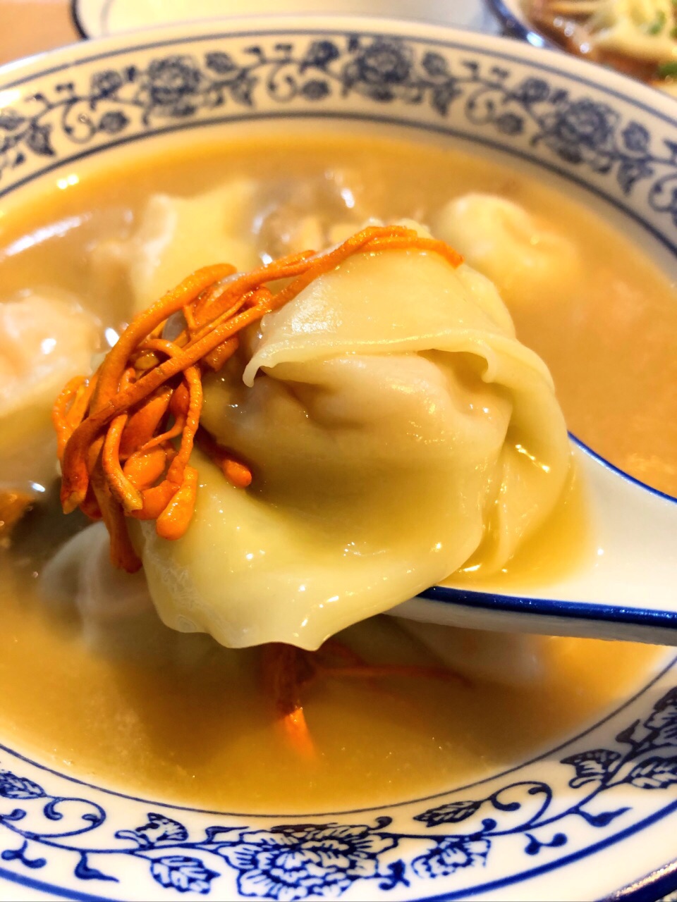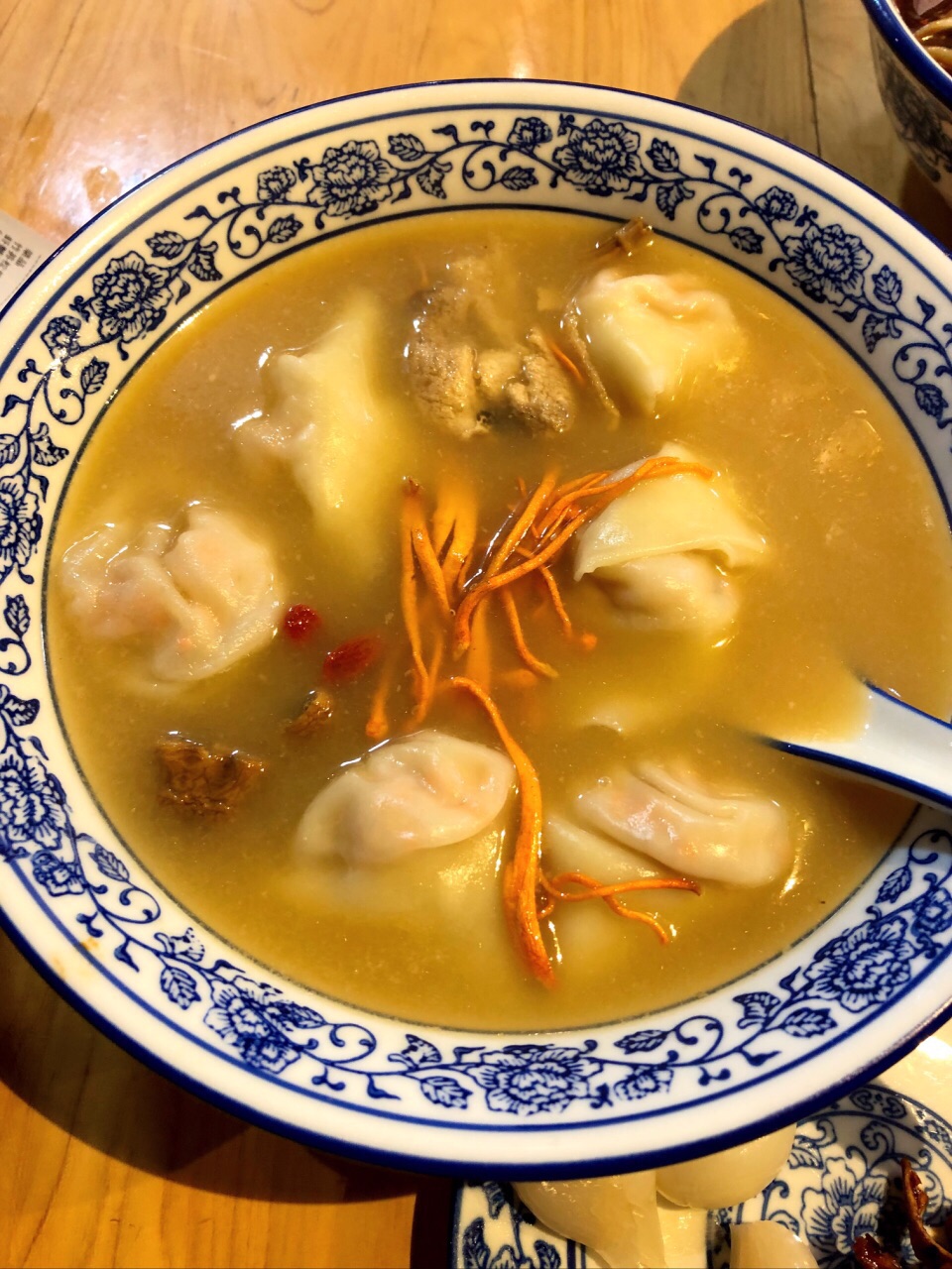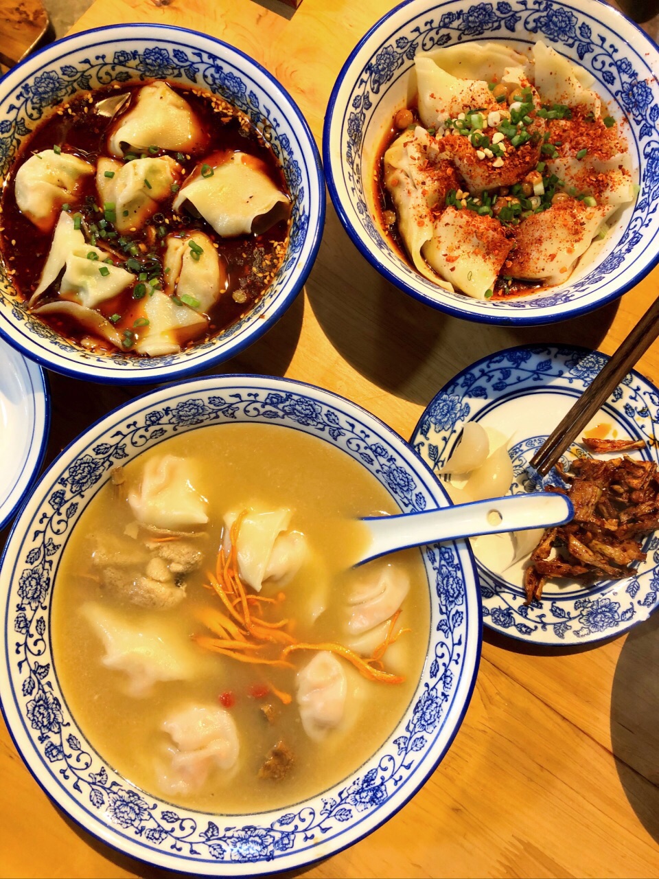 这种大抄手开得越来越多了,之前建设路的两家没有吃,这家离我比较近抄手兄妹就先约来告一哈。 馅儿有三种,猪肉,芦笋龙利鱼,鲜虾蟹子。三个人点了四个小份,小份都是六个。小胃女生6个足矣,抄手个头真的很大! 【竹荪松茸鲜虾蟹子抄手】18,6个。汤头很鲜,里面是姬松茸,竹荪,虫草花。抄手皮儿比较有韧性,馅儿很饱满,吃得到虾虾的Q和蟹子的脆。 【竹荪牛肝菌猪肉抄手】16,6个,这个汤头貌似更受欢迎,感觉更浓郁一些。猪肉馅儿的抄手吃起来也不错,就是有点容易散。 【红汤龙利鱼芦笋鸡肉抄手】16,6个,虽然红汤味道比较一般,但是龙利鱼芦笋鸡肉馅儿很嫩气也很有特色。 【干拌抄手】8,6个。发现其实每一家大抄手的干拌都没有汤的好吃,这家也是,少了些蒜味,少了些甜辣味,红油不够香,麻味也没有。但是颜色看起来还是挺好看的,里面的豌豆炸得嘎嘣脆。 下午去的,饭点时间人还是很多,有一半都是外地胖友慕名而来。
