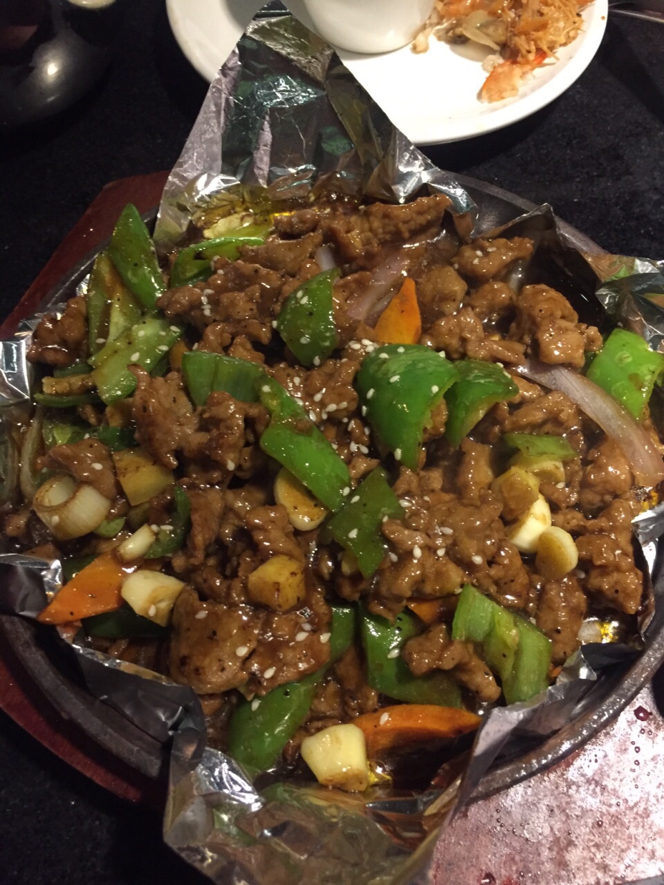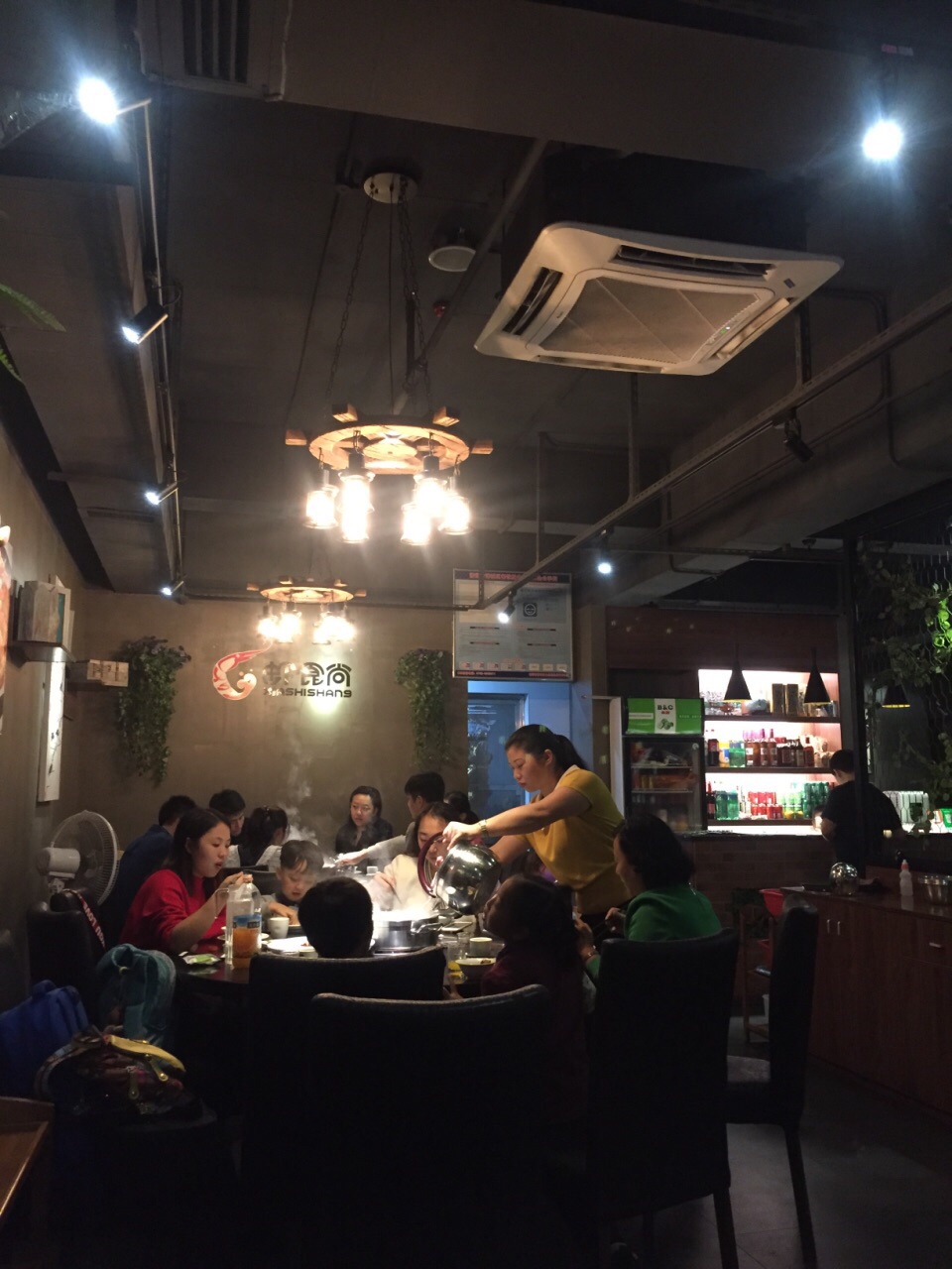 到美林湖住酒店,在摩天轮商业街这边找的一家饭店,原因是有团购套餐,价格不贵,而且是街上生意比较好的一家店。虾食尚在二楼,装修走小清新风,里面不算很大,靠窗的四人卡座可以看到街景,还比较舒服。团购了一个虾锅套餐,因为有小孩子,咨询了店员点了一个酱香味,其实酱香还是微辣的。团购的二人套餐里面包含的是小的虾锅,虾其实也是挺多的,吃到最后都已经腻了。我比较喜欢里面的田鸡,比较新鲜,而且不会像虾一样吸了太多酱汁容易让人发腻。但这个锅我比较不喜欢的是垫底太多大豆芽菜了,我本身不喜欢大豆芽菜的味道,觉得虾里面都充斥了这股味道严重影响了虾的口感。有可能换了香辣味就没有这个问题。还点了一个铁板牛肉,46块钱,份量超大牛肉非常多。菜心18块钱一碟也算是比较优惠的。总括来说这家店不过不失,但不会有吃完还想再吃的感觉。