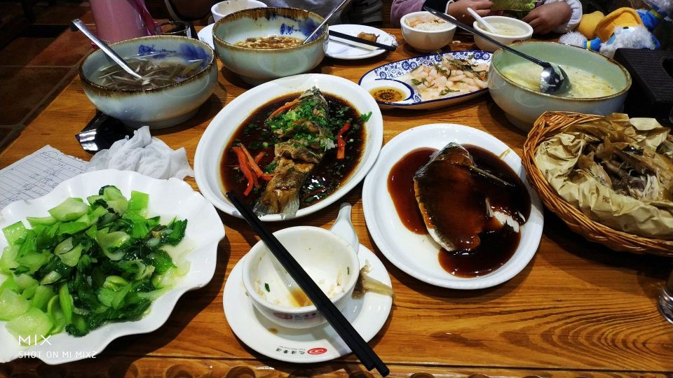 这是17年12月5号晚上来吃的,今年第二次来杭州。 第二天就要离开了,怎么的也得吃一次杭帮菜。 由于杭帮菜大部分都带有甜味,老婆不太喜欢。但是在我坚持下,还是过来吃了。 看了美团,团购的陆记饭庄。 晚上6点半从酒店叫了辆曹操专车过来,就在西湖天地对面。 原本以为会很多人要排队,没想到到了店里一看还是有位置的。店面不大,好像还有二楼,不记得了。 我们团购的4人餐,188元。不是很能吃,而是都想吃。 菜品有叫花童子鸡,龙井虾仁,西湖醋鱼两吃,陆记豆腐,桂花酒酿圆子,东坡肉,炒青菜,西湖莼菜汤。 菜量还是比较足的,味道虽不是很出彩,但也过得去。 最后基本上都被我们(应该是我)吃完了。