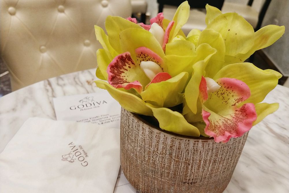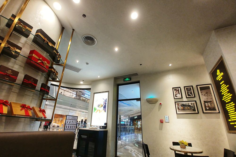 在景枫的一楼,靠近电梯出口,小喷泉过去一点儿,很好找的。 门口看起来不大,进去之后发现座位还是挺多的,纵深挺深。桌上的花儿都是鲜花,给赞。 服务生说话细声细气的,笑容甜美,服务挺好的。 黑巧冰淇淋,巧克力味很浓,醇香,好吃。