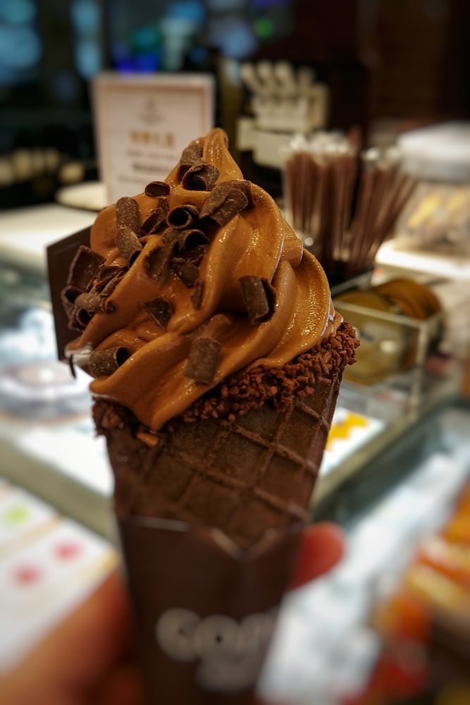 黑巧冰淇淋,巧克力味很浓,醇香,好吃。在景枫的一楼,靠近电梯出口,小喷泉过去一点儿,很好找的