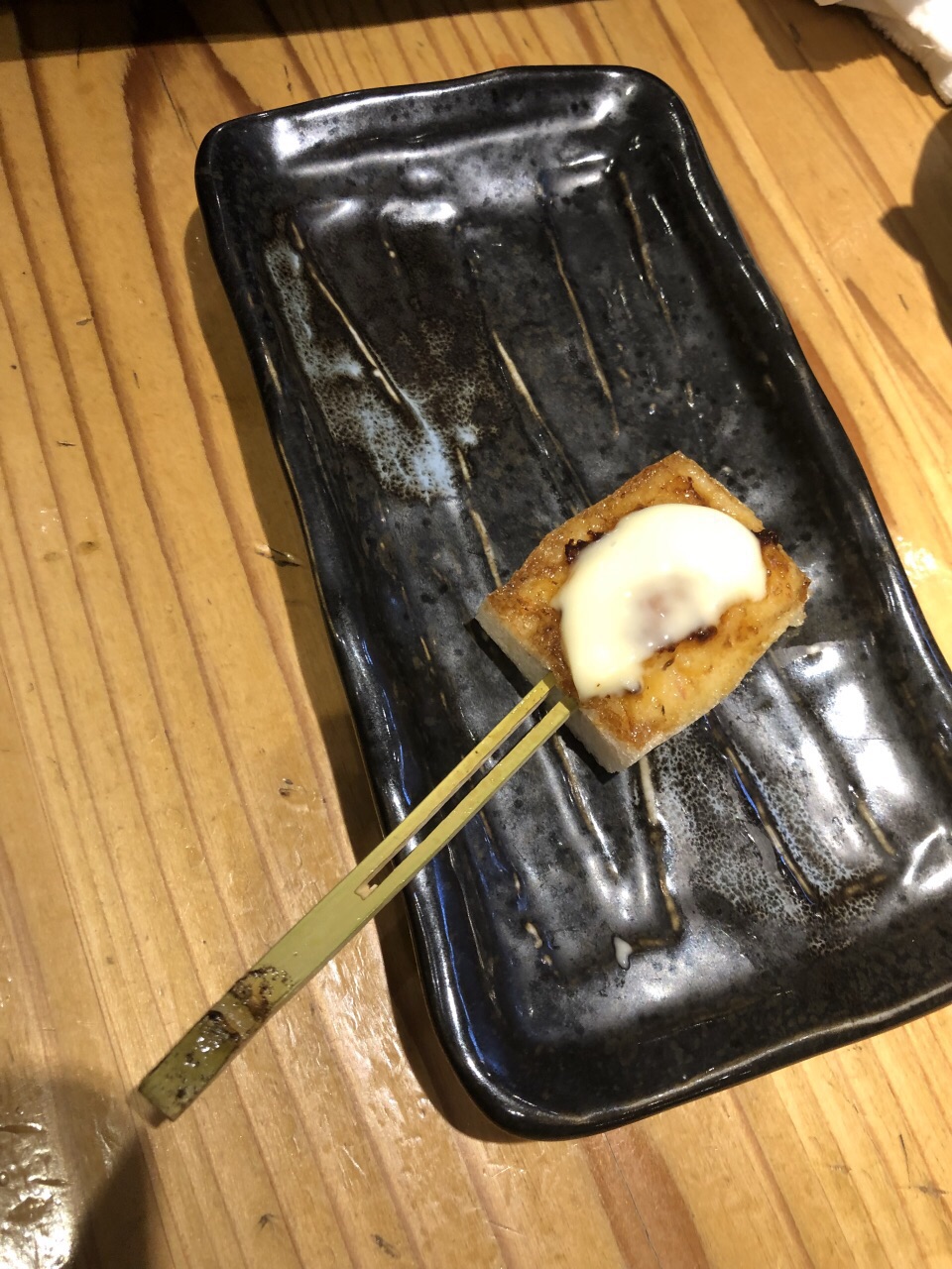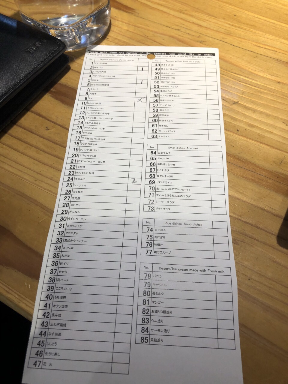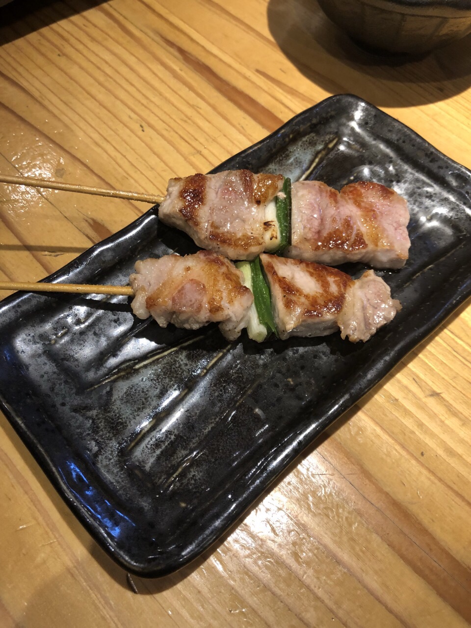 在大阪市内的最后一餐,想着日本行还有烤串没吃过,然后就看到了这家店,天意如此,那就进去了。 进去看了下菜单之后,发现可并不便宜。差不多一串是200日元,而且那一串的份量真的是很感人的。 点的串都还不错,少油,很健康。 最棒的就是翅中,烤得很棒,很漂亮,而且就一面是焦的。处理得很好,就留了一根方便拿的骨头,其他就是肉,很赞。 柚子梅油不错。 就是等的时间有点点久,没事过来吃还可以。