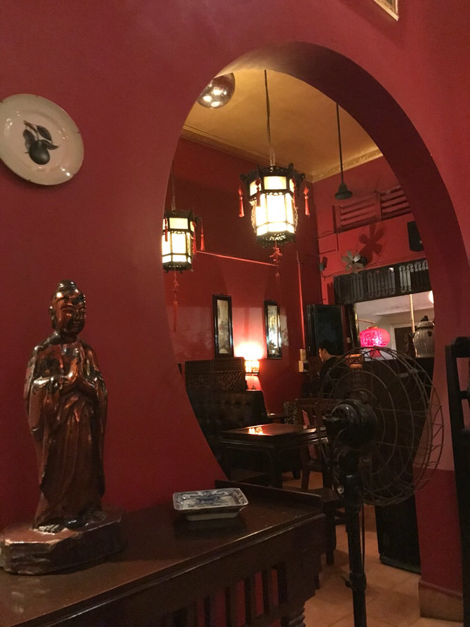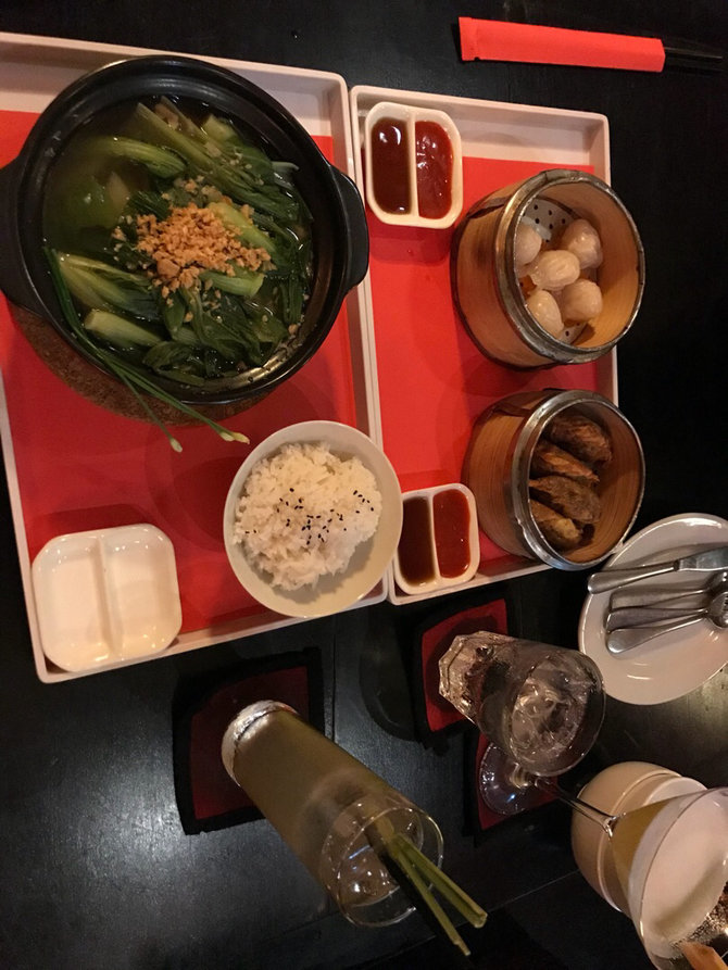 这家号称是中国餐厅,入座的都是外国人。就餐厅装潢来说,的确中国风很浓,就菜品来说,窜了味道。点了一份豆腐煲(豆腐里夹着蘑菇碎)清汤寡水,没味道,而且蒜特别特别多,吃到最后汤里都是蒜泥。还有虾蒸饺和炸素饺子,虾蒸饺味道还是可以的,另一个炸素饺子还好吧!