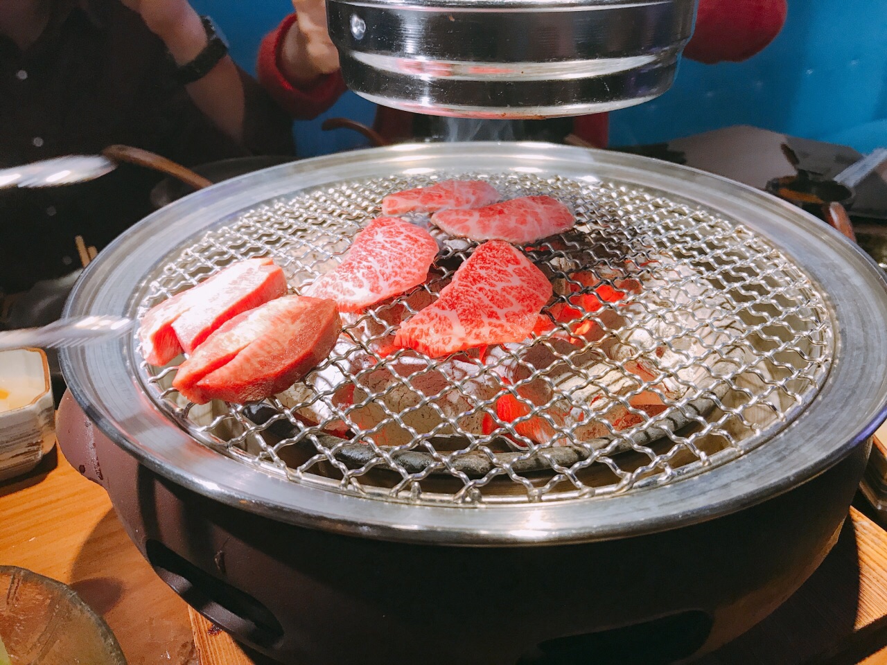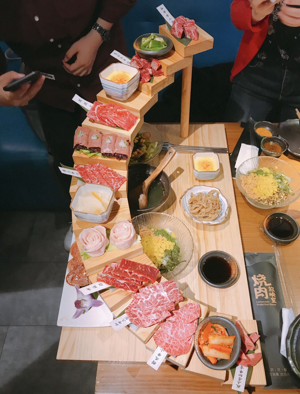 南京数一数二的烧肉店,团购有套餐非常划算,非常美味的日式烧肉店。以电影为主题,内部环境很复古。套餐端上来的时候都惊呆了,像阶梯式的摆盘,每一层都是一种肉,简直是食肉星人的福星。烤肉之前的小菜也好好吃,凉拌肚丝有韧性,凉拌秋葵很清爽,沙拉和布丁都好好吃,员工饭也太好吃了吧,羡慕这边的烤肉小哥。全程小哥哥亲自烤肉,每一口都是鲜嫩多汁,就算是不蘸料原味吃,也好吃。