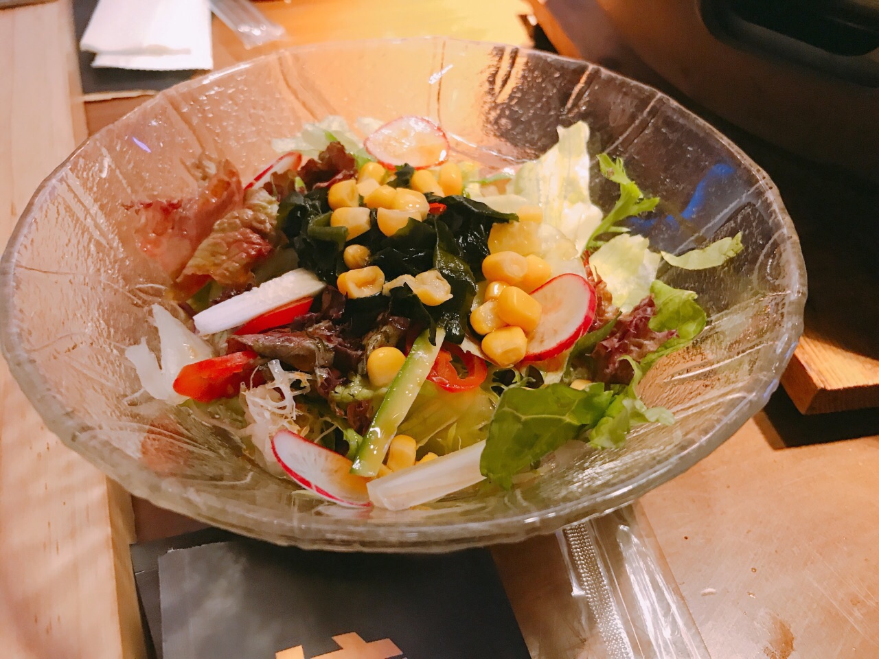 烤肉之前的小菜也好好吃,凉拌肚丝有韧性,凉拌秋葵很清爽,沙拉和布丁都好好吃,员工饭也太好吃了吧...