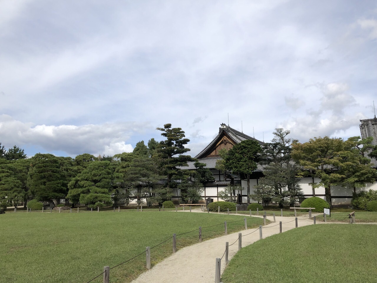 属于二条城的内城,还能上内城的城墙上看到整个城的风光,确实挺美的在二条城内的一个庭园,圆林修剪得很漂亮。里面的景观都很简洁,让人感觉就很讲究,很艺术。 属于二条城的内城,还能上内城的城墙上看到整个城的风光,确实挺美的。