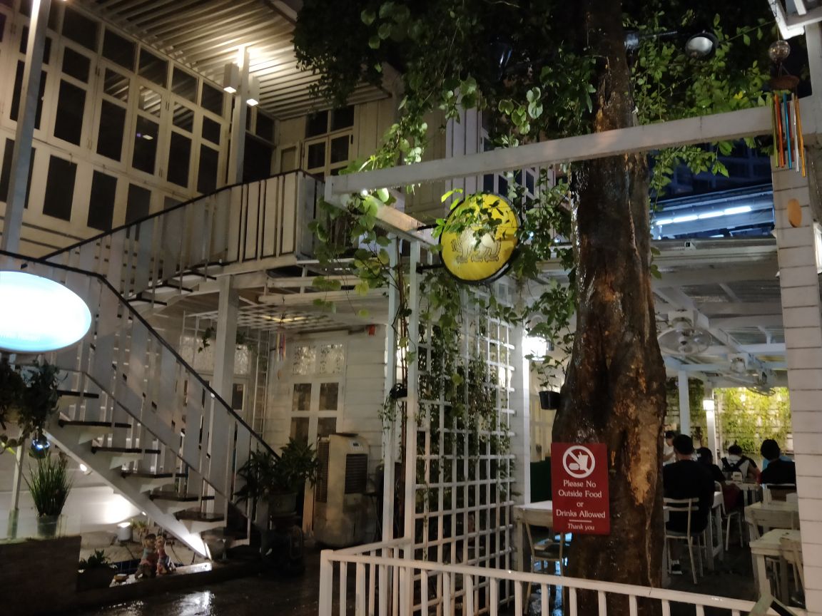 就在住的酒店的那一条路上面,也就是在天铁站的旁边,正对面,餐厅的环境还是相当不错的,而且是这整条路上面唯一一家环境好的正餐厅。 主要吃的还是当地菜为主,环境是我最喜欢的,有一楼也有二楼都是半露天的位置。 在外围,甚至有很多绿色植物围绕里面就是白色的主色调,菜品的价钱比较合理,服务也不错,比起很多知名的餐厅这里真的是性价比高很多。 最推荐的一个菜就是咖喱蟹,用了蛋花做底,入晒味道。
