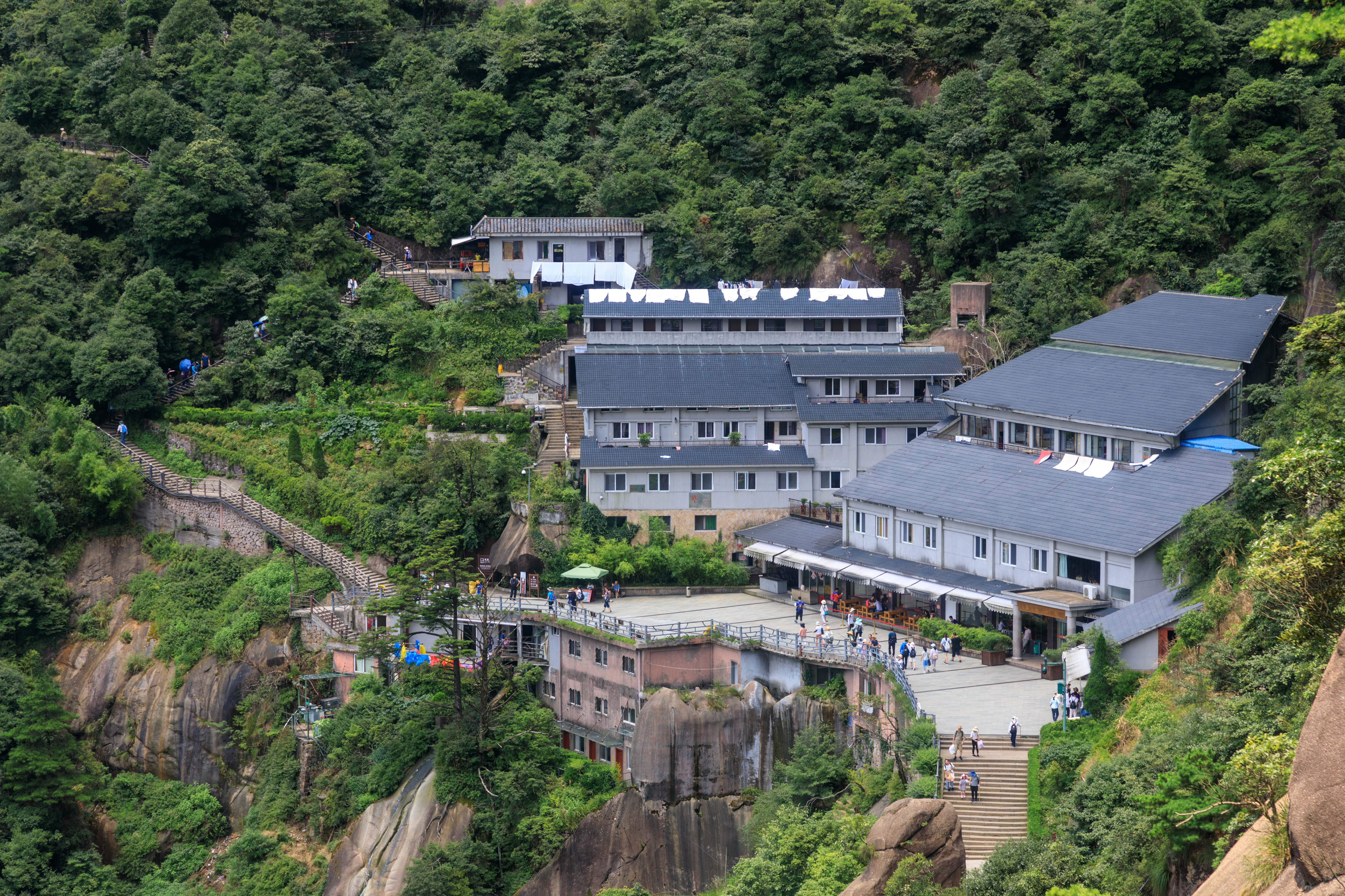 没有住宿,在这吃了中餐,因食材物料需挑夫从山下每斤1元挑上来,餐饮价格、质量也就不挑剔了。