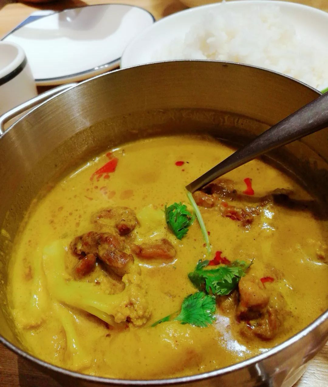 米纸卷和肉串也非常的好吃。 咖喱饭,咖喱的味道很浓郁,米饭质量绝对一级棒,搭配起来好吃的不要不要的点的酸汤粉,味道还算是不错,海鲜感觉质量不行,搭配的蛤蜊肉有点老。 咖喱饭,咖喱的味道很浓郁,米饭质量绝对一级棒,搭配起来好吃的不要不要的。 布丁蛮喜欢的,口感不错。 米纸卷和肉串也非常的好吃。