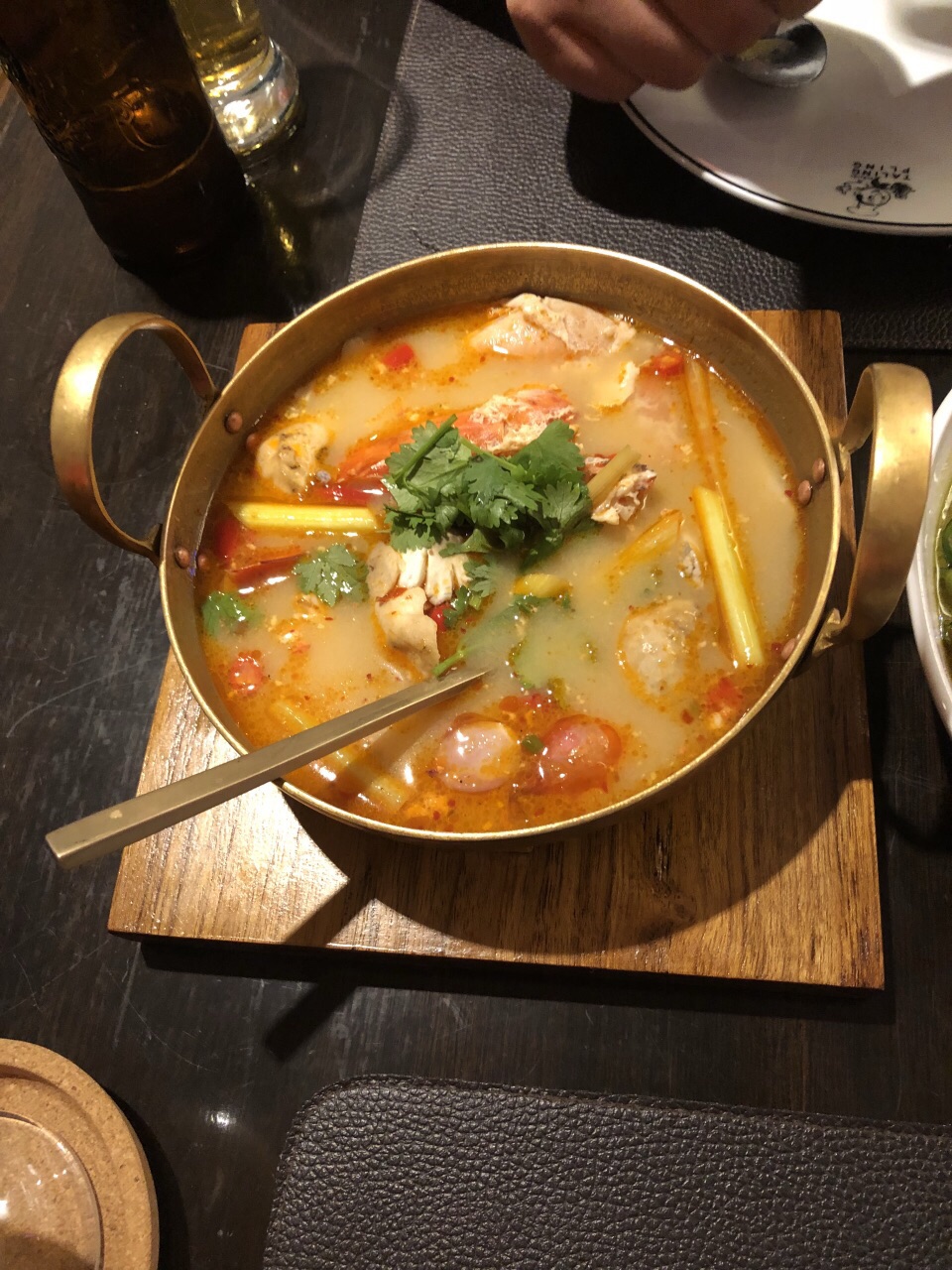 在暹罗广场宝格丽的B1层,这个楼层有很多的小食和餐馆,走到这里觉得是比较纯正的泰国菜,就进去尝了一下。服务不错,菜单有图片和英文,店员不大懂中文,但是看到我们有点咖喱会问需不需要米饭,泰茶点的热的,味道很浓郁,很香甜。可以刷卡也可以付现金。绿咖喱里面稍微有一点点辣,但是配米饭也还好。