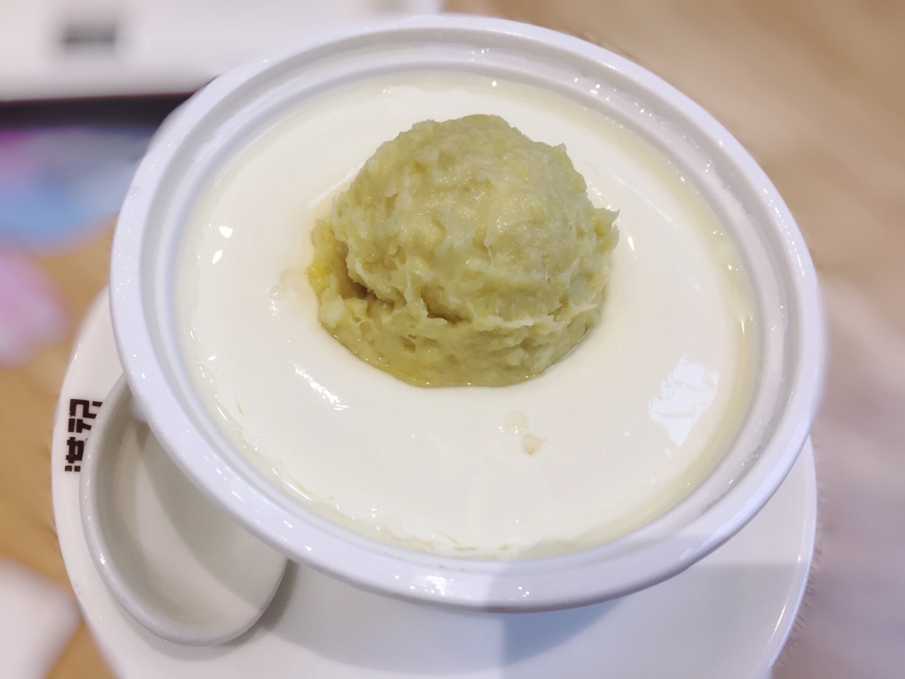 ...一个人能吃10个 奶香四溢的双皮奶 每日现蒸,每一口皆如丝般顺滑 配上浓浓的榴莲味 满满的满足
