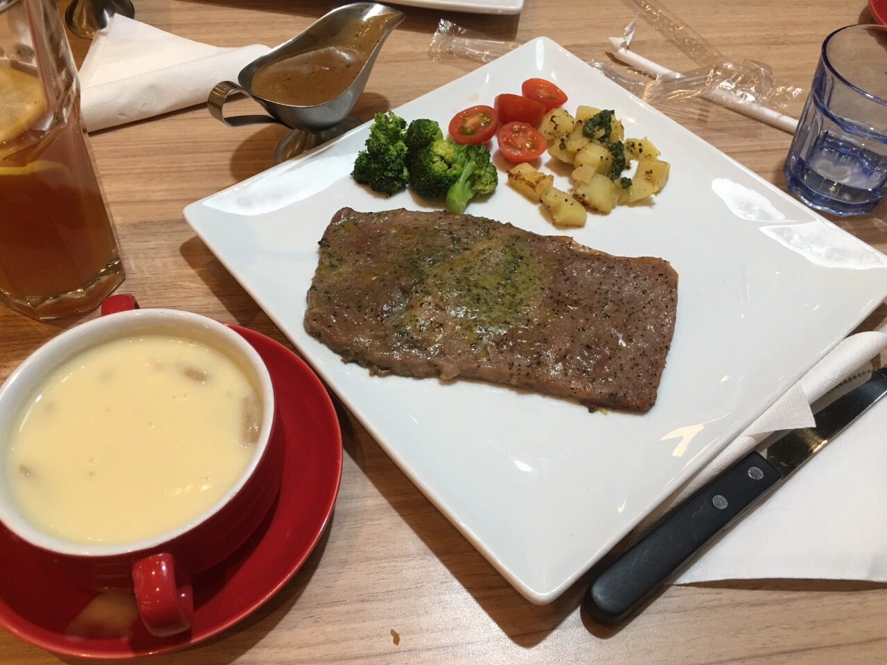 很久没有把必胜客当正餐了 这次来主要还是吃牛排 最近看起来活动很多 好在正好进门的时候空出个桌子 顺利坐下 牛排还是一如既往的合成肉 中规中矩 不过有一股味道 小食东西还挺多 鸡翅虾饼薯条和虾球应该是 饮料两杯水果茶 总体一般般吧
