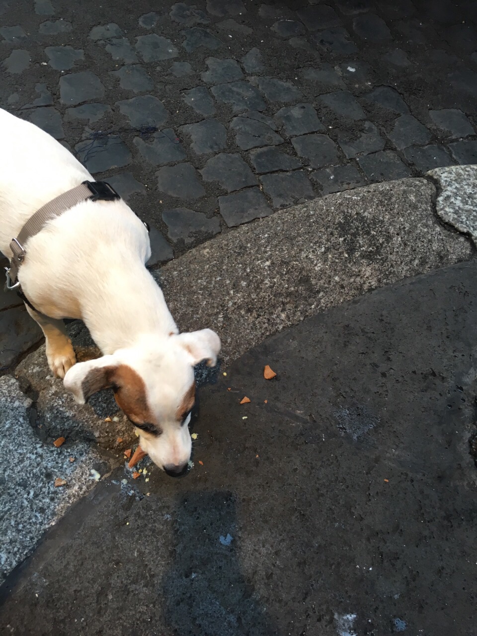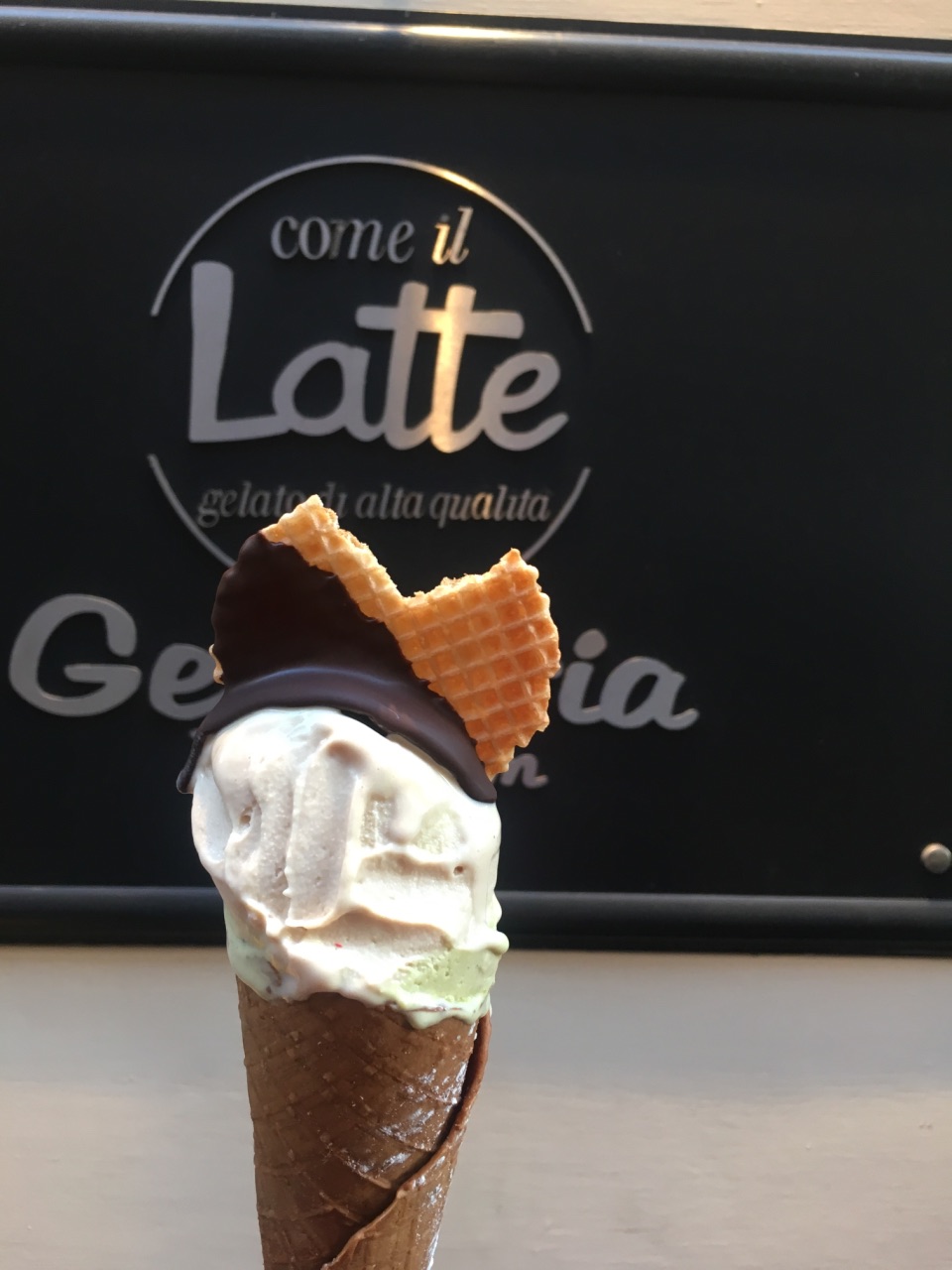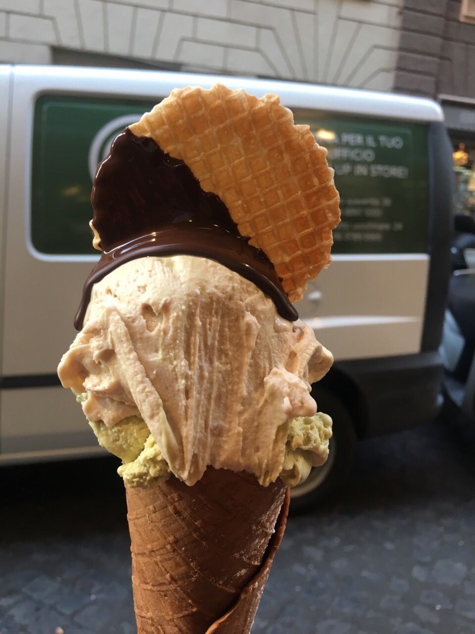 这家冰淇淋店在罗马甜品排名第六,我们去的时候,生意确实不错,感觉好多当地人来吃,一边给自己买一个,还要给自己的狗吃冰淇淋。意大利的狗也绝了,爱吃冰淇淋,还只吃冰淇淋,不吃蛋筒! 这家口味不多,有普通的和home made的,我买的home made 的,毫无新意的选了开心果和盐渍焦糖。冰淇淋入口很细腻,小伙伴们都觉得比我们前一天吃的Frigidarium好吃。我觉得味道还好,就是太甜了,后面全给狗吃了!