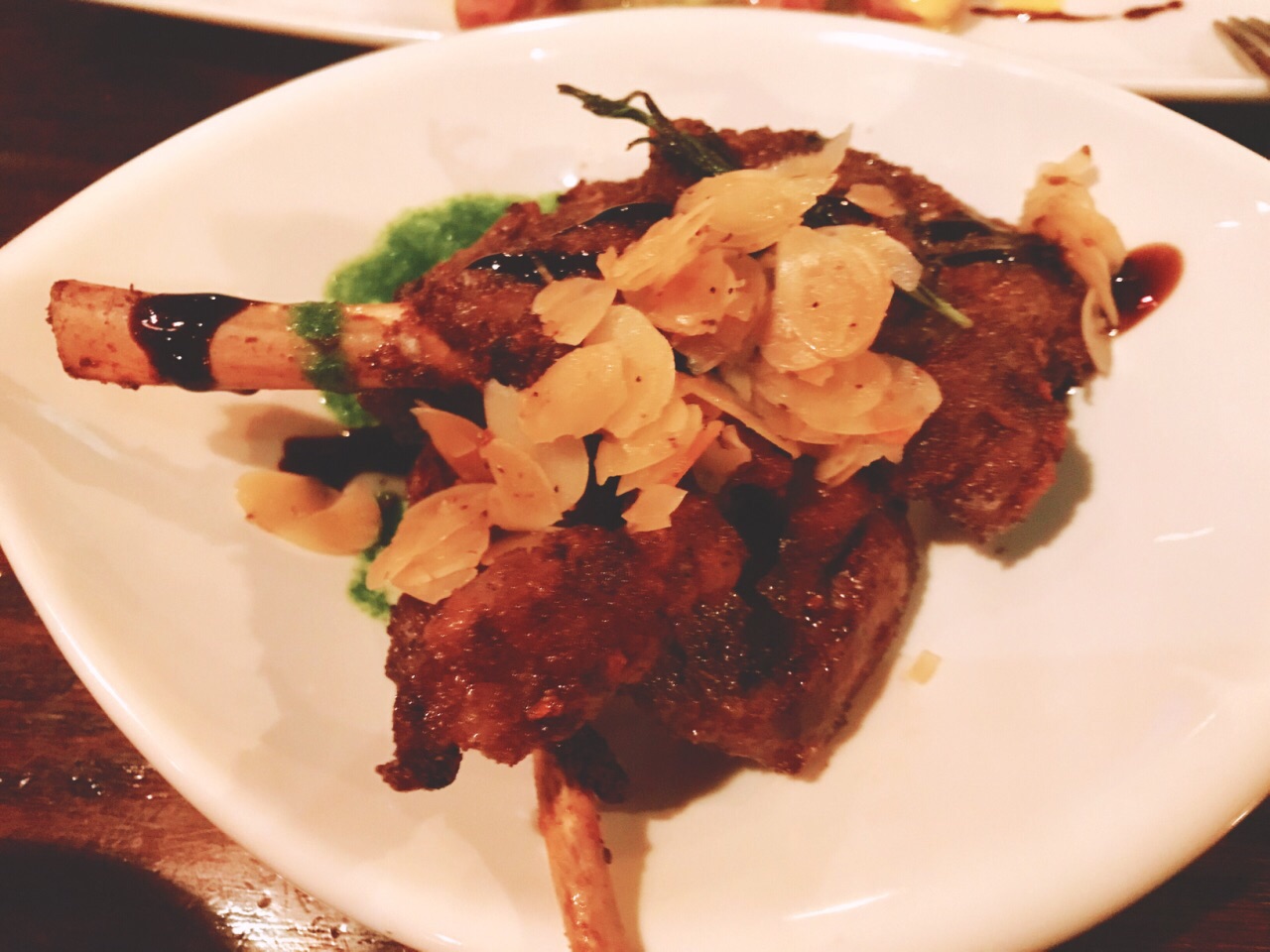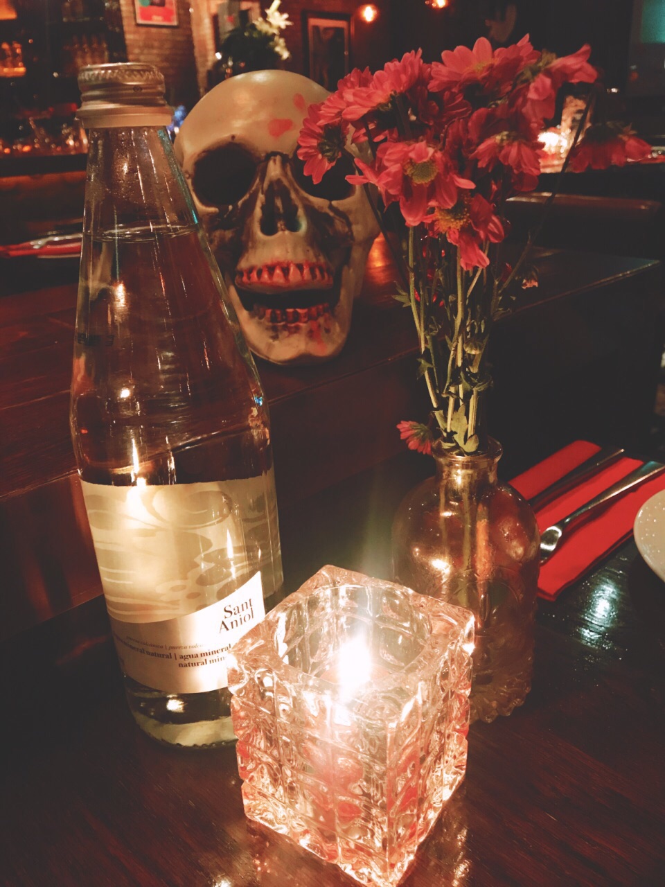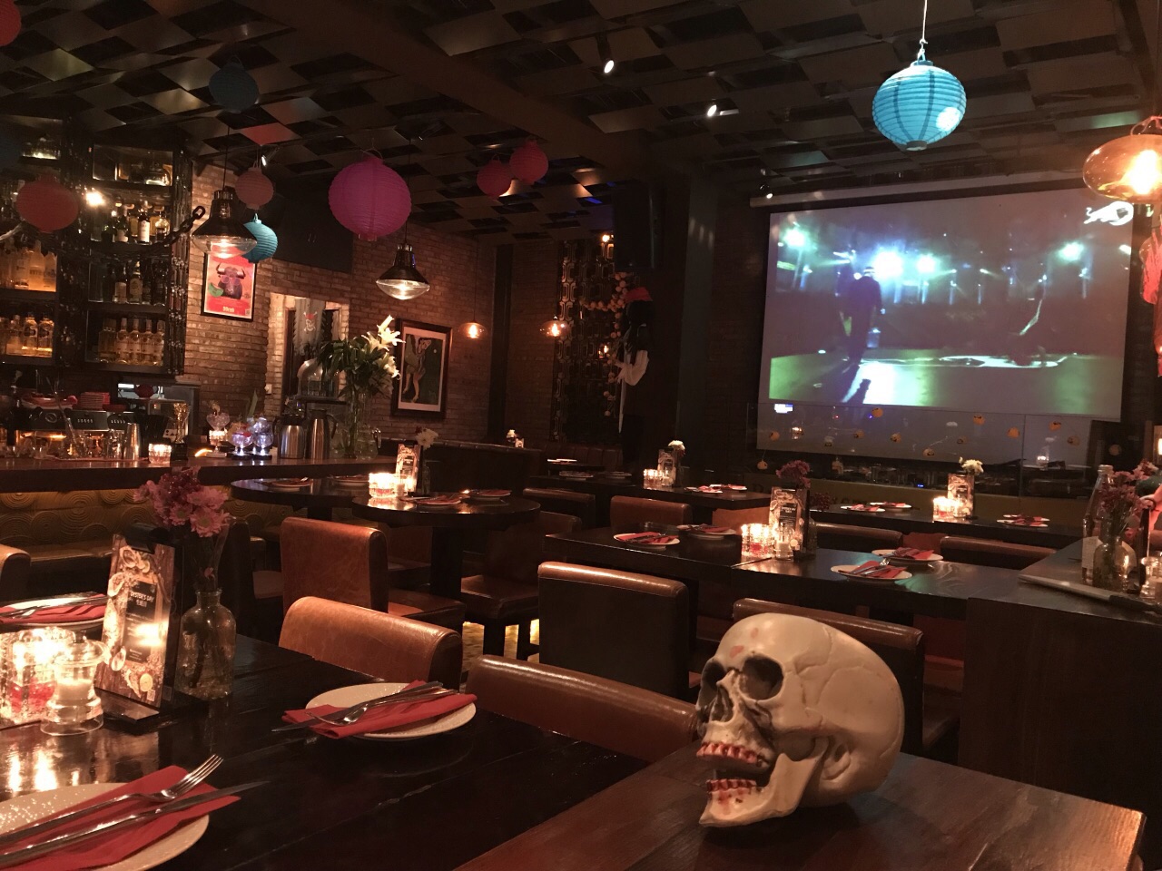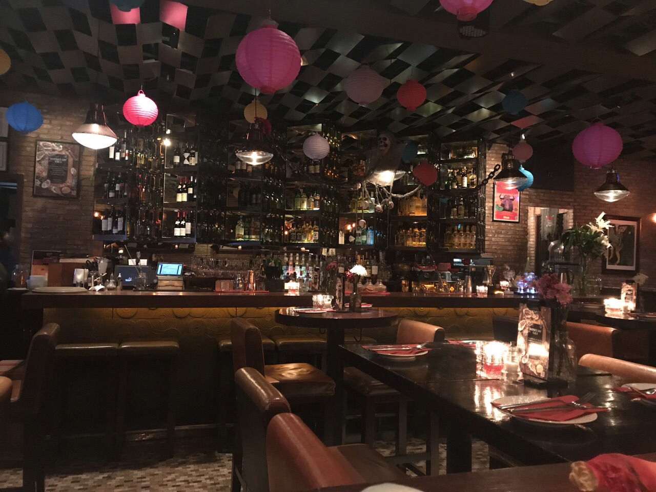 挑了这家店过万圣节,还好预订了座位,人气还很高。这家店有室内和室外,我还是偏向室内,一进门就感觉是家酒吧餐厅,万圣节的气氛还很浓,我们点了招牌羊架,很嫩很香。还有西班牙墨汁炒饭,味道不错,就是量太少。最棒的还是它家的酒,点了布朗石mojito是招牌,超级好喝。