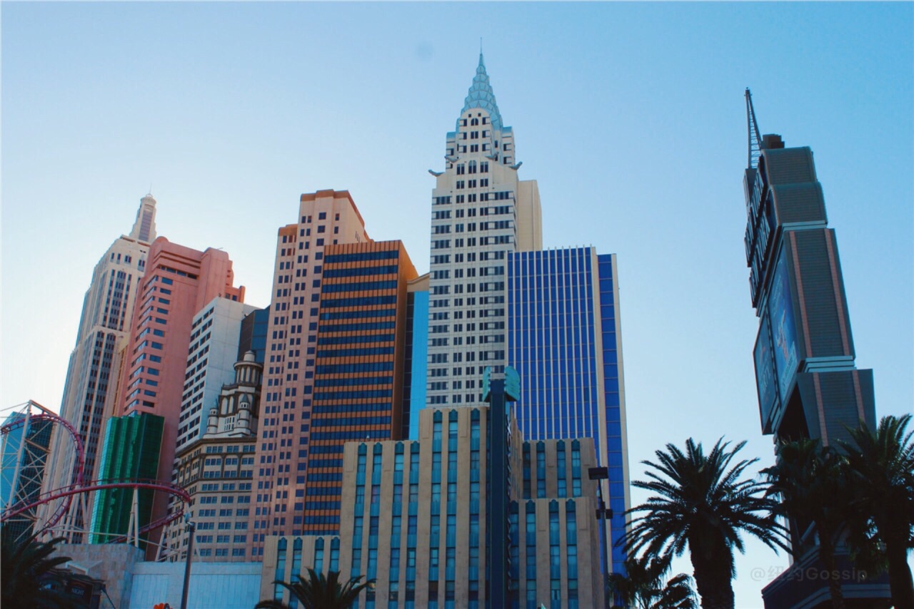 她的背景是著名的多栋纽约高楼大厦,虽然也是仿制的,但楼里其实就是“纽约纽约”酒店的房间