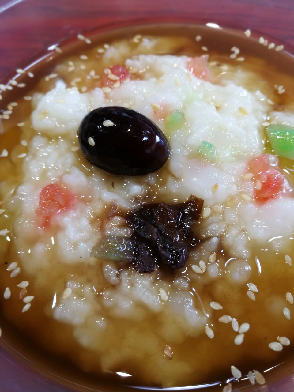 ...冰稀饭,虽然时间放久了已经没有冰感,但是味道不错,稀饭软糯,甜度适中,搭配小锅特别爽,下次还来