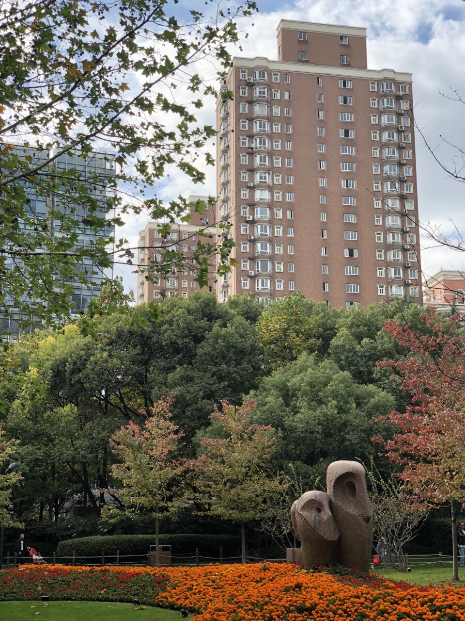 这个绿地是自己原来生活的地方。当初的华山路幸福邨为了建这个绿地被拆掉了。 这个绿地建成后也快二十年了。绿树森森成荫,游人如织。其中的雕塑挺精致的。原来幸福邨口的公交站点也挪了,站牌上的“幸福邨”站名也改掉了。其周围是幸福路、平武路还有云阳路多处入口可以进去。附近番禺路上有邬达克纪念馆,有上海影城,也有泰安路等,可以顺带领略老上海风情。