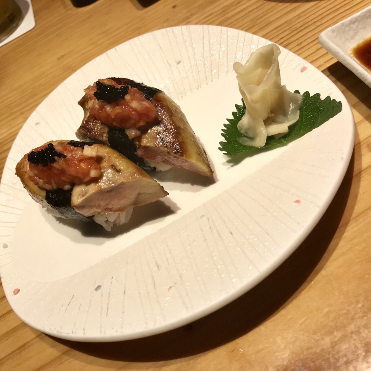 钟爱日料的二人组终于来拔草了,临时决定过来,周六晚上无需等位;都是包房,脱鞋后被引位入内。 可以单点的生鱼片和牡丹虾极好吃,新鲜入口顺滑,最钟意的是可以自行选择搭配,如果某款只点了一片,也认认真真地一分为二端上餐桌。 只点了2款寿司,鹅肝和鳗鱼,认真脸强烈推荐,尤其是鹅肝,好大一块入口即化。 荞麦冷面面条质量上乘,Q弹有劲道。 用pad点餐很方便,洗手间日式服务风格明显。