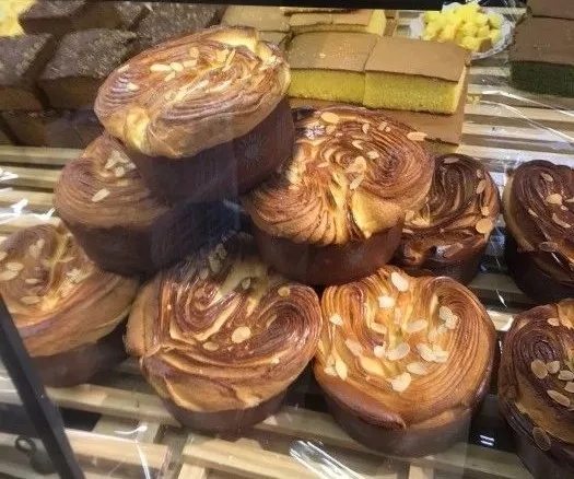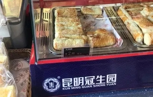冠生园是一家百年老店了,他们家的糕点在昆明可是小有名气,他们家生产的“梅花牌云腿月饼”,一直扬名海外,简单传统却一点也不输高大尚的西式糕点。 每天生产的老面手撕包,采用的是老面的工艺制作,烤得焦黄香脆,在上面放一些坚果点缀,一大个最爱了。