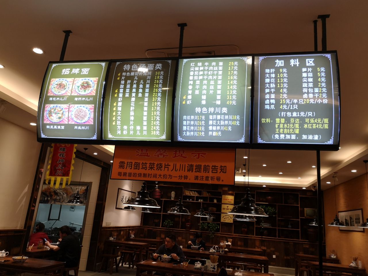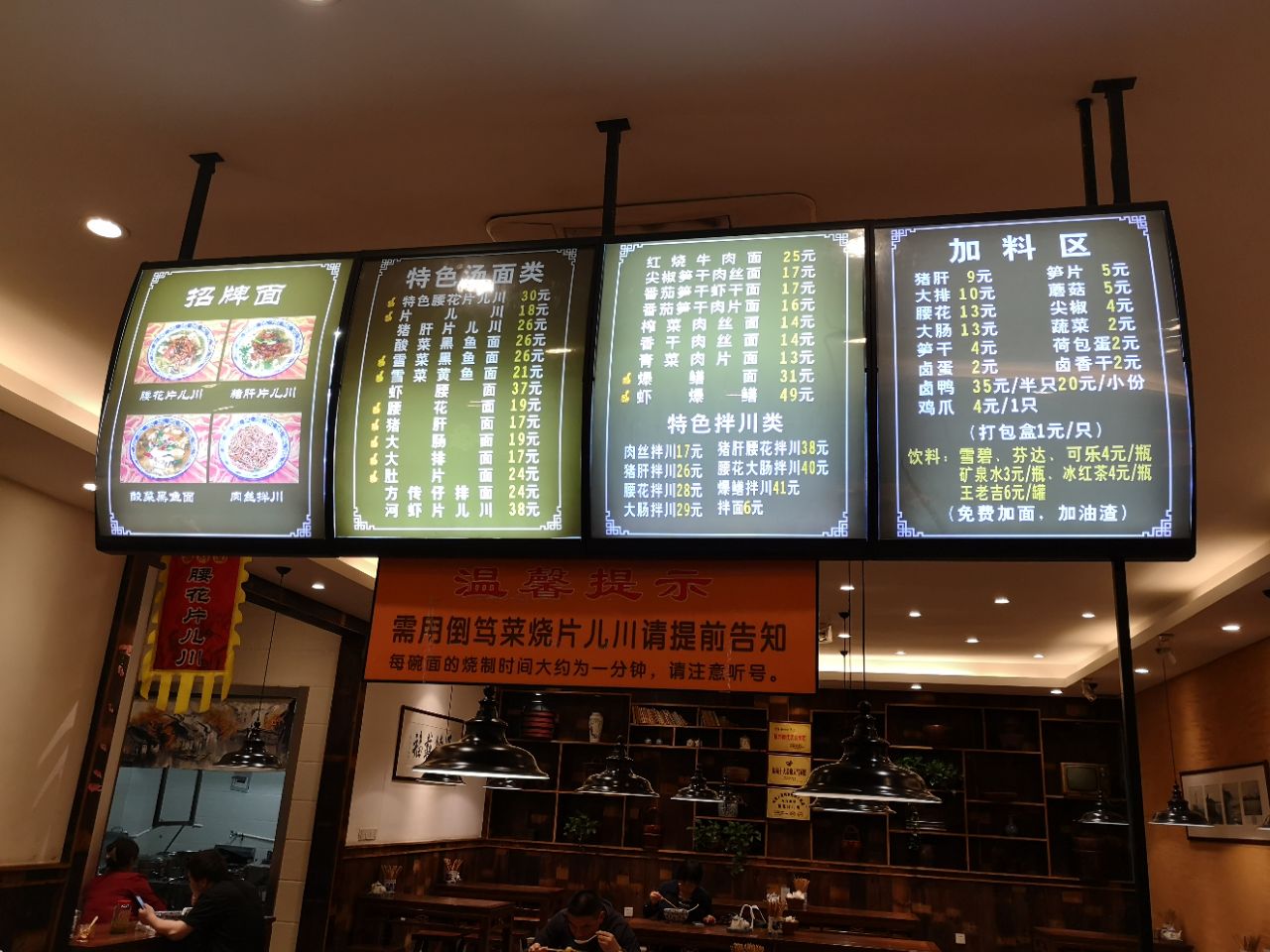 傍晚回家,出了中河北路地铁口,阵雨劈头盖脸落下来。没有带雨伞,脱下外套遮盖头顶,恰好有点饥肠辘辘,于是进入方传面馆用汤面的温暖御寒并且躲雨。 位于环北市场门口,中河北路地铁口的方传面馆就像老邻居一样亲切,和方老大面馆的老板据说是兄弟。服务员穿着统一制服,点了最简单的青菜肉丝面,厨房里用大锅烧了起来。 店内面积也算比较宽敞了,布置简洁也充满老杭州风情。油渣和“”神仙汤“”梅干菜笋干汤无限量供应。虽然是免费赠品,神仙汤的味道也是精心熬制。 面条是满满一大碗,飘着浓郁的香味,青菜绿油油,肉丝味道新鲜,面条蛮有劲道,汤底鲜美无比。吃碗面总是忍不住要多喝几口汤。厨艺的精致都在汤底里体现。 一碗青菜肉丝面,秋夜阵雨里那一碗杭帮面的温暖。