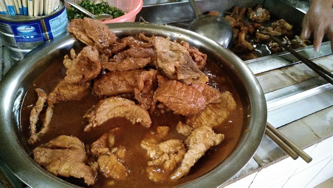 环境就是普通小店面,还是干净的。一大盆猪脚,随便选,自己挑哪一块,浇在粉上