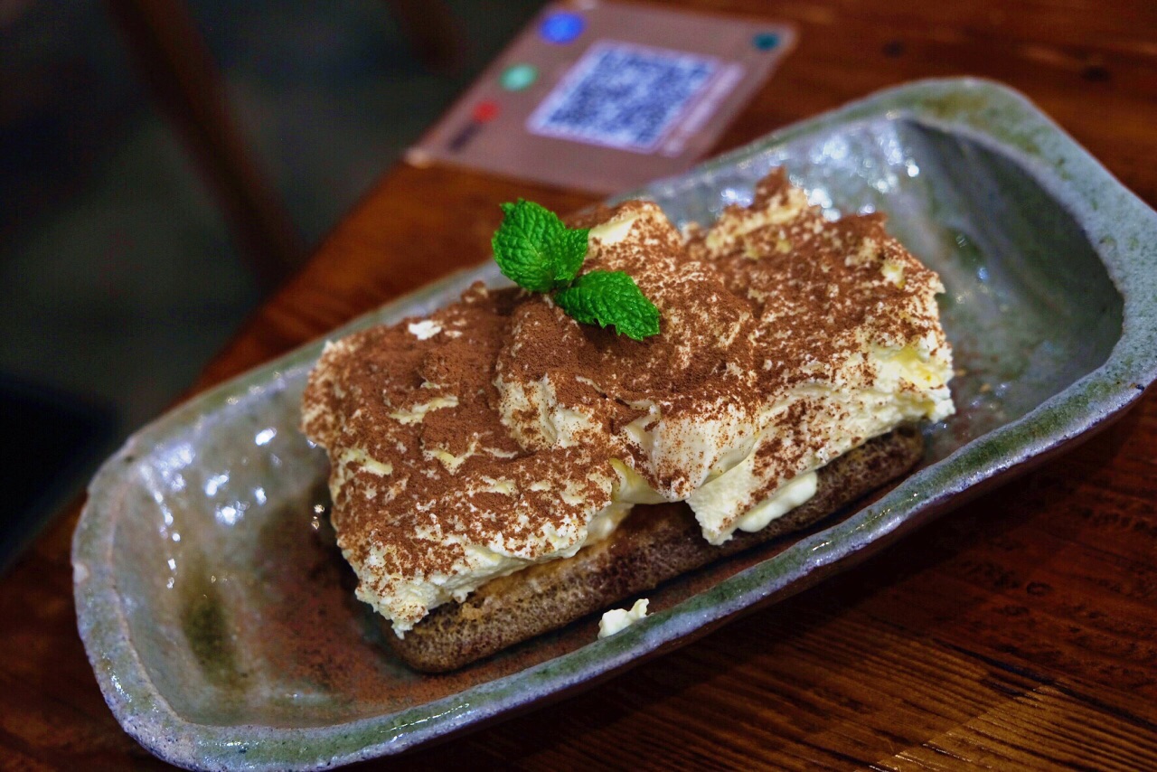 米饭是很烂但是很香的奶油饭 奶油味浓而不腻 鸡块比较辣但好好吃 【自制的提拉米苏】 很有噱头的...