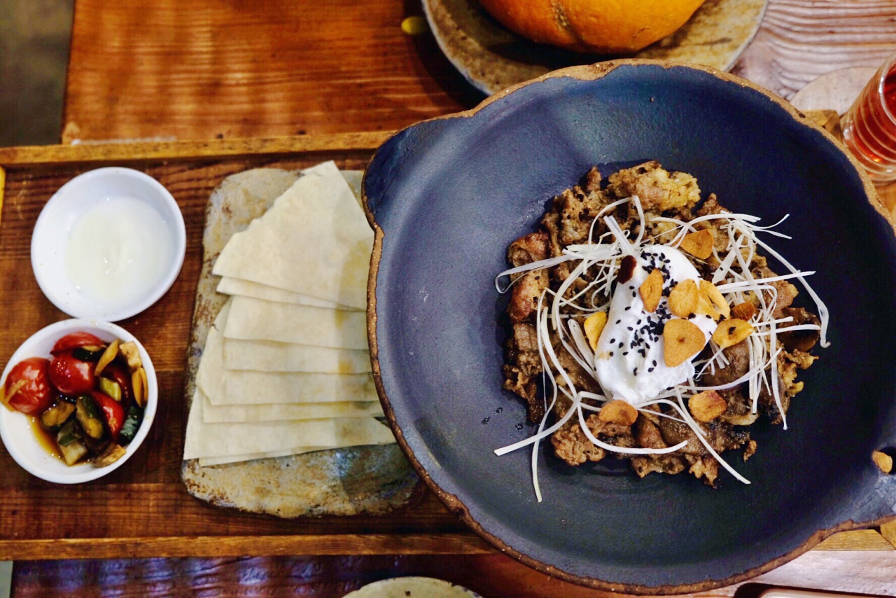 K11隐藏的一家韩料店 倍乐旗下的创意料理 之前吃倍乐时超喜欢的 所以这次来试试这家 店内桌椅都是木质的 环境比较昏暗但很有优雅 服务很好 态度满分 最欣喜的是菜单以手绘形式呈现 喜欢喜欢 【开胃红石榴果醋】 会送餐前果醋和餐后拿铁 颜值很高 酸酸甜甜的 果然开胃 拿铁是把黑咖啡冻成冰块 倒入牛奶 也很有特色 虽然我不太喝咖啡 【直火碳烤肥牛】88米。 很有创意的料理 肥牛可以包在给的米饼里一起吃 还配了腌黄瓜和酸奶酱 解腻又好吃 还有香香的烤蘑菇 同样好吃 【黄金南瓜粥】 真的是一整只南瓜端上来的 南瓜煮的很香很糯 既有南瓜粥的稠厚 也有奶油南瓜汤的浓郁 暖暖一碗下肚 除了饱腹感还有幸福感 【奶油火辣鸡烩饭】 米饭是很烂但是很香的奶油饭 奶油味浓而不腻 鸡块比较辣但好好吃 【自制的提拉米苏】 很有噱头的甜品 整个手作的过程都会在你面前展现 韩国小哥哥 还会跟你讲解每个步骤 加入了手指饼干反而有些粗糙 建议还是纯提拉米苏更赞 总体而言 李教授家的韩料多了几分精致的仪式感 独特又有创意 完美