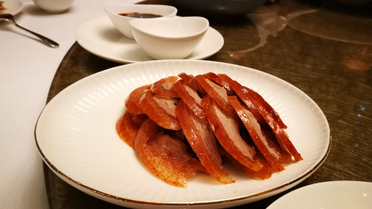 欢迎远方来客,家里领导在这家餐厅组织了次小聚会,订了个半开放的半包房,空间、视野都不受局限,而且最低消费也比包房便宜的多。停车要停到LG2超市旁的车位,乘超市内的电梯到四楼就可以直接进餐厅,还可以顺便欣赏一下透明厨房和烤鸭炉,和大厨打个招呼。商厦内其他电梯都只能到三楼,再想找到四楼的餐厅就有难度了。一年前来过一次,现在餐厅内已没有装修味道了,装潢色调觉得清冷了一些。菜总的来说虽然贵,做的还很不错,特别是烤鸭,德国朋友吃的不亦乐乎。服务则明显跟不上,似乎人手严重不足,要一小碟醋,茶壶加点水,没有十分钟再去催根本做不好,甚至还发生把要加水的茶壶直接收掉的举动;还好服务生反应能力还是有一些,我们质问之后立即打招呼重新泡了一壶上来。至于菜嘛,直接看照片吧。另外,这次看了下餐厅的室外平台,没意思,景色难看土气,今后不必考虑