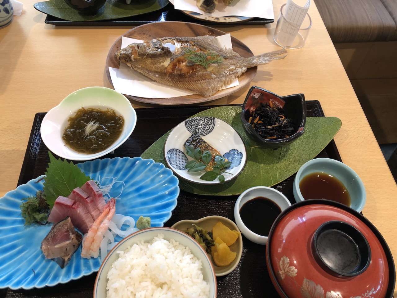 逛完地狱温泉做公交车到北滨町下,向西走一点儿,左转,路的左侧就是了。我和小伴儿一人点了一份定食,一份炸虾天妇罗、一份刺身的,分别尝个味儿[呲牙]定食的小菜差不多,区别在主菜。刺身还行吧,虽然新鲜,但并没有觉得非常之鲜美,估计价钱的原因吧,鱼炸的很焦,米饭太多了,那么少的菜吃不下那么多米饭,味增汤偏咸;炸虾天妇罗真心不错,强烈推荐,难怪会桌桌都点~大虾外面裹的食材貌似和咱们这边不一样,有淡淡的咸鲜之味,口感也更细腻!后悔没点个贵的尝尝