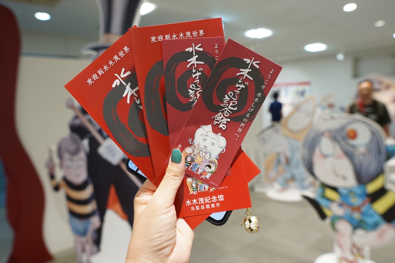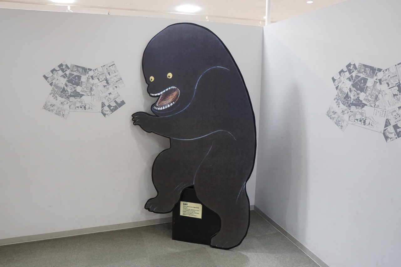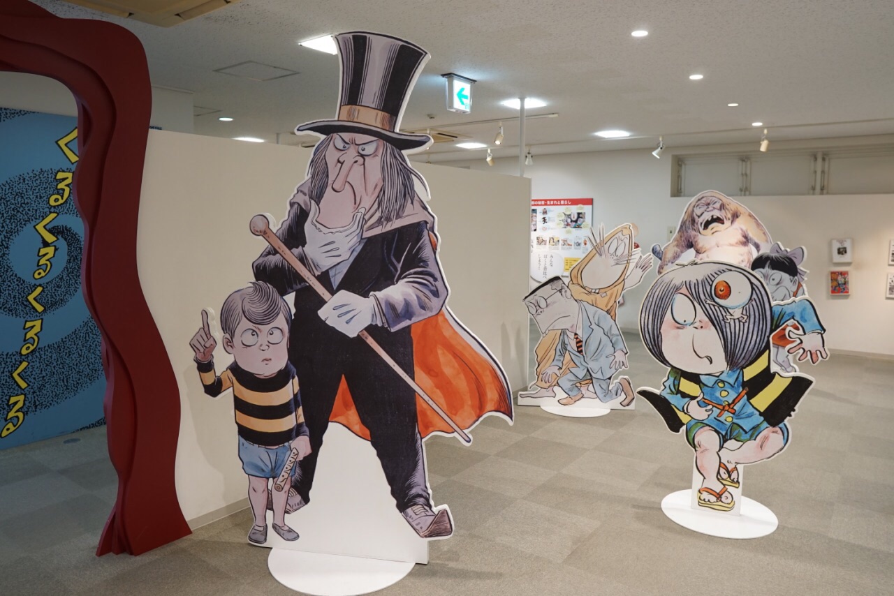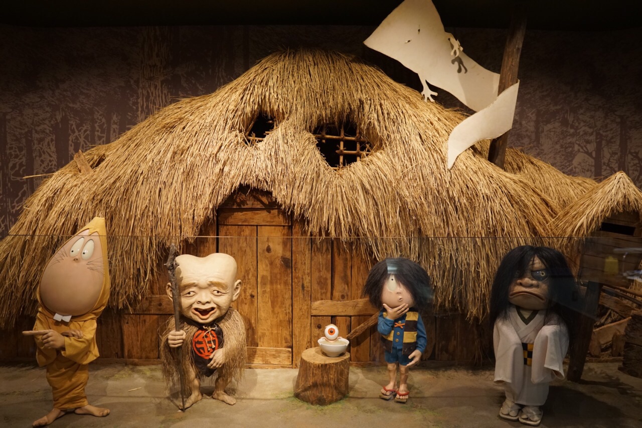 沿着水木茂大道笔直走大约10分钟就是水木茂纪念馆,里面展示着每个时代的漫画和动画作品,陈列着大量水木茂的冒险旅行和妖怪研究的照片和资料,还有水木茂先生的工作室和他的一生经历。馆内手稿区域是不能拍照的,除此之外都可以摄影,我们可能对这妖怪的世界不太了解,但还是被这些滑稽的妖怪角色深深吸引。从纪念馆出来又遇到鬼太郎,和另一个妖怪角色(我不认识哈哈哈),还给我搞怪,拍照挡着我,和老公合影还用脑袋顶他,笑死。