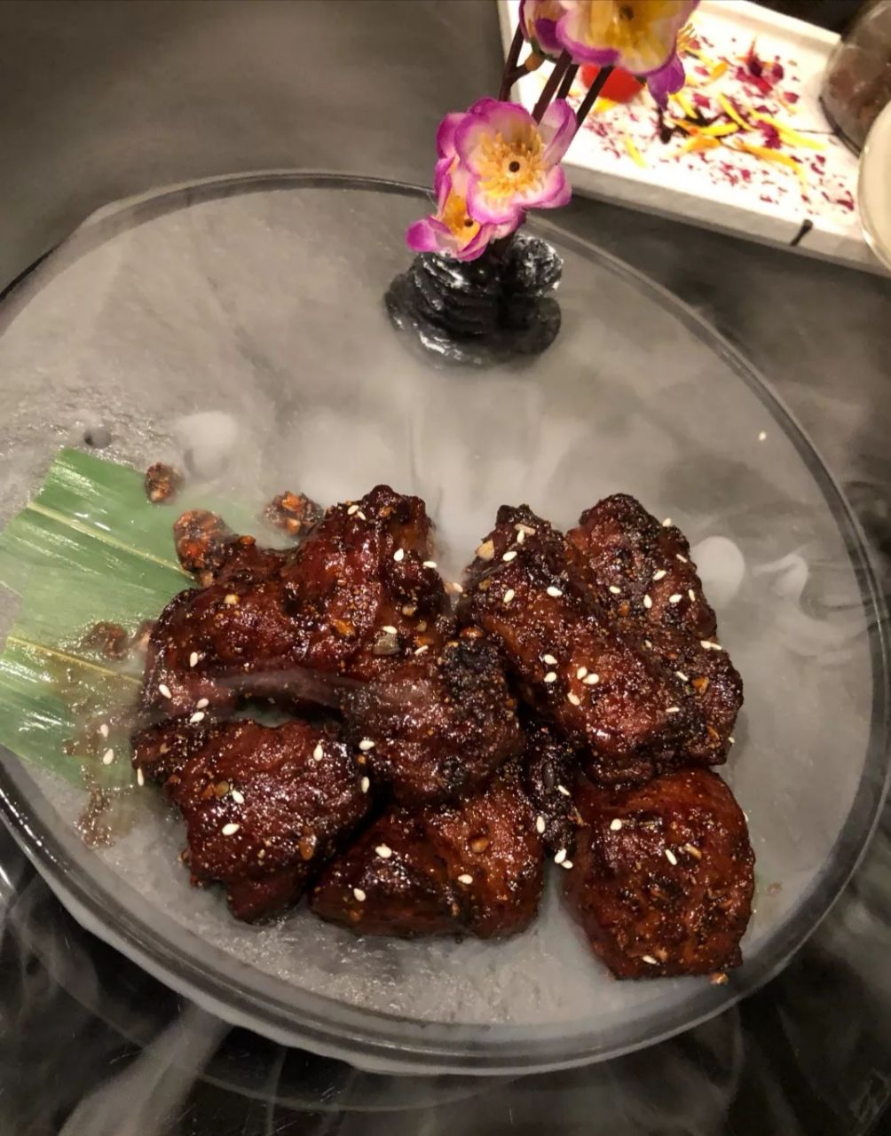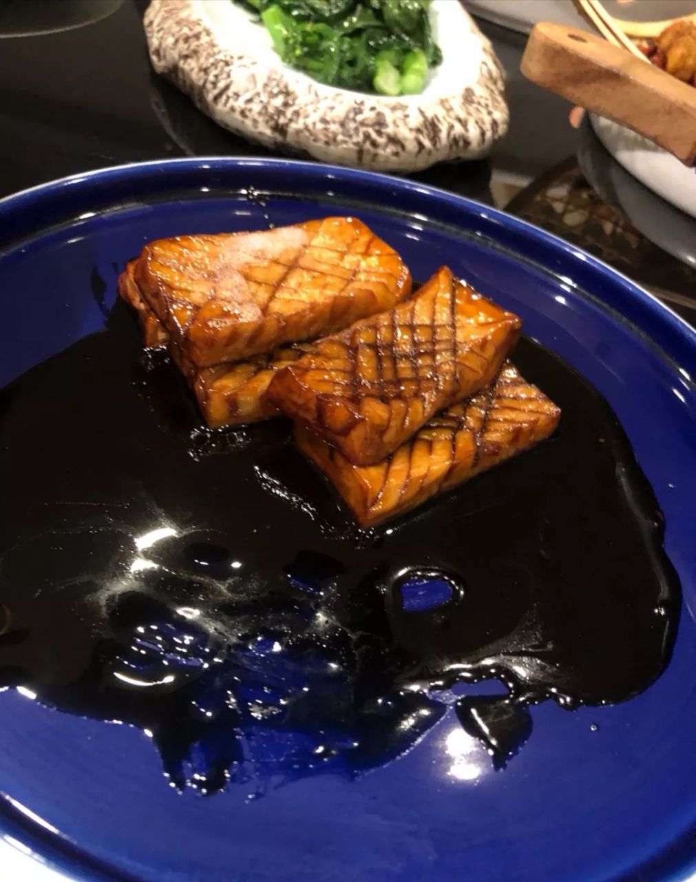 干煎杏鲍菇,煎过的杏鲍菇淋上微甜的汁,口感味道好极了。 经典考伯萨拉,满满一大盆,挺好吃的,材料丰富。 酸汤牛蛙,牛蛙比较鲜嫩,好吃。 安格斯澳洲小牛肉,一口咬下去,汁水很足,一点也不柴,很是好吃。 清蒸多宝鱼,食材很新鲜,鱼肉鲜嫩,味道好。