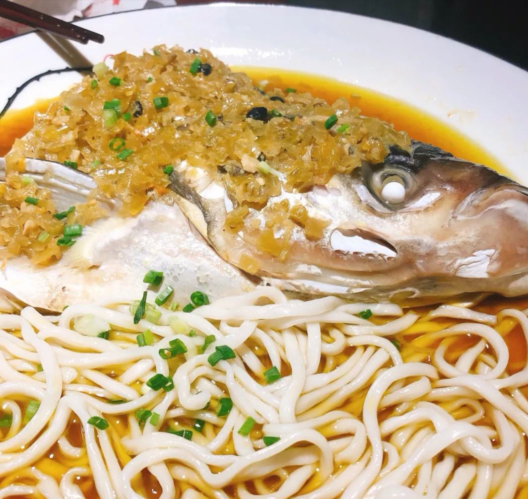茶树菇,非常好吃,有菌类本身的鲜味在里面,味道像薯片,很营养,口感脆脆的,完全停不下来。 铁板大虾,虾的量挺多,个头也挺大,不用去壳直接吃。 特色蹄花,这个一定要点,和别的店不一样,卤汁特别下饭。 苗岭鱼头王,这家鱼头肉很多,味道有点辣,很开胃,蘸汁水更好吃。