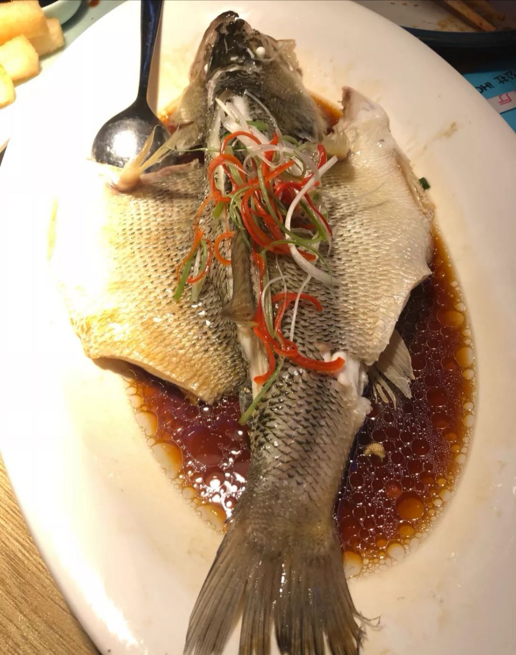...,口感鲜咸,鱼肉细嫩爽滑,鱼肉的鲜美完全呈现,汤汁带米酒的甜,豆豉的香,吃到嘴里绝对是一种享受