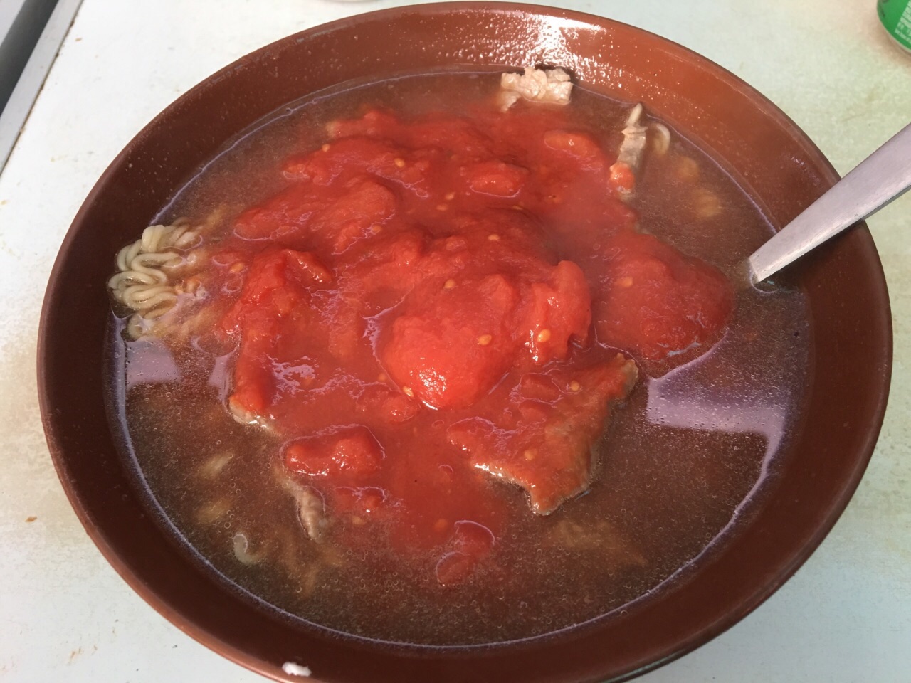 胜香园中环的那家店,一大清早还没开始营业就吃货们在排队了;到了晚上5点之后,胜香园已经收摊了,还陆陆续续有吃货找过来,一看收摊了说怎么收的这么早!胜香园受欢迎是真真的。这次在柴湾看到这家,也许是位置的确比不上中环吧,没有那么多游客,居然没有人排队。既然这么轻松就能吃到胜香园,那也就不要错过机会了。点的依然是最畅销的鲜茄牛,尝得出来是熬了很久的牛肉汤,汤浓鲜香,番茄的天然微酸,很开胃的说