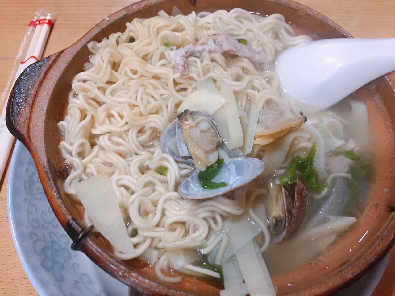 ∠( ᐛ 」∠)_ 来自阿5朋友的推荐,离沙坡尾、猫街蛮近的,据说也是家老店了,换了位置,门面装修不错,上下两层。 「砂锅」,第一次点,有点懵,先选配菜,至少点3样,冰柜里菜品挺丰富的,蔬菜、海鲜、火锅料、肉类等,尝试搭配了酸笋,瘦肉、花蛤。接下来选面,手工面、米粉、面线等,第一次来个安全牌,泡面。3样15元,扫码付款后,老板会给个号码牌。 坐在一楼,就在点餐区边上,不时听到“酸笋”二字,[悠闲]嗯~,同道中人呀。 砂锅的精彩都在汤里,原谅我词乏,就是好喝,酸笋不错,花蛤一般,瘦肉是个坑,勿入,又硬又柴。对于女生,这样一份还蛮饱的。喜欢吃辣的,可以搭配他家的辣椒,还蛮香的。也可以点个「五香条」佐餐下,不是刚炸出来的,味道也还可以。