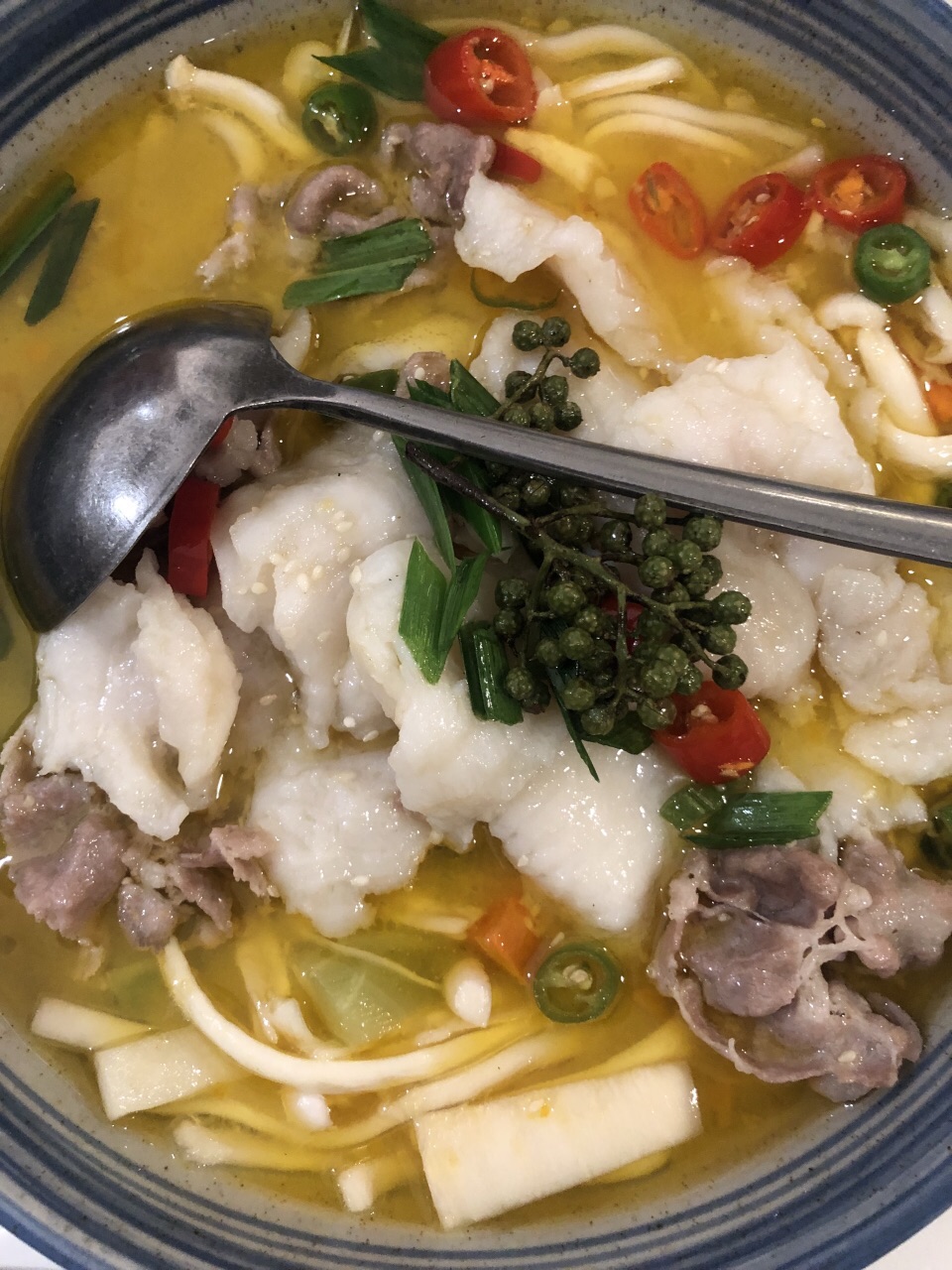 冰镇小红螺一点不小,非常好吃。接下来说菜色。酸汤雪花鱼,汤酸微辣,鱼嫩滑爽口,可惜鱼无味,不推荐