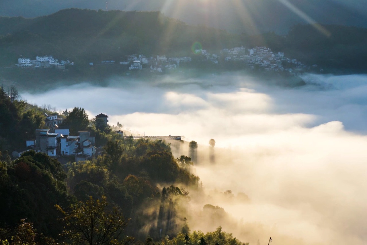 ...,一览无遗,壮阔的云海在奔腾着,加上徽派房屋的点缀,简直就是天上人间,不愧是全国有名的摄影基地