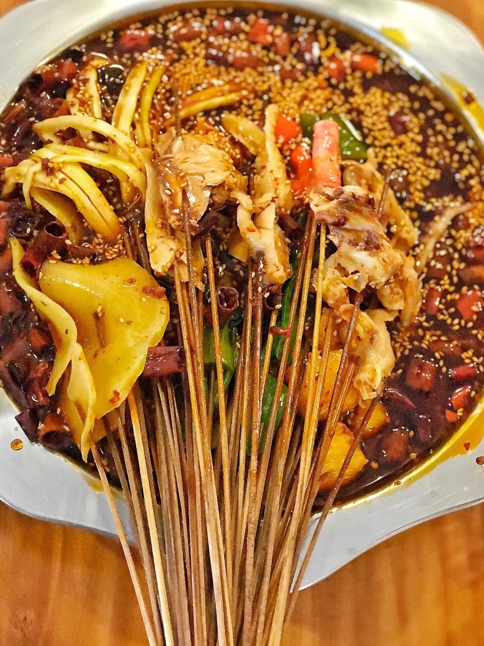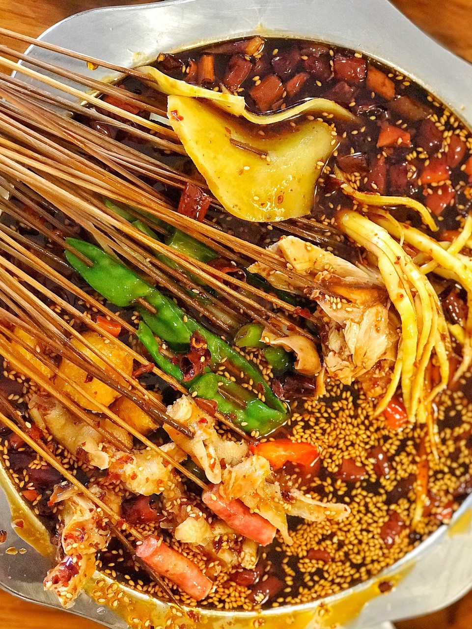 总评: 这家店就是原来柏杨东路的五通桥钵钵鸡,大家不要误会了。 换了一个名字,味道还是依旧的不错。 推荐鸡肉、贡菜,口感味道都很好。 主食就来一碗浓稠的鸡汤饭,一笼大个头的蒸饺,超满足! 生意很好,随时都很好,建议稍微有点耐心,因为大家都吃很快的。 评分:82分 性价比:❤❤❤ 这家钵钵鸡因为生意特别好,所以菜品都很新鲜,每天供不应求的状态,千万不用担心有隔夜的情况。 串串选材也还是不错,每一根都比较扎实,所以价格比起一般的小店会贵一点。 来这边吃钵钵鸡的人都是本地人,或者慕名而来的外地客,总之就是喜欢吃好吃嘴儿。 环境很普通啦,生意一好就显得有些拥挤,但是热热闹闹的气氛吃东西还是多有感觉的。 好在钵钵鸡选好菜就可以开吃,不用等着上菜,吃完就走,所以翻台特别快。 经常就是在你还没吃完的情况,旁边就有客人等着,你一起身,立马抢占位置。 【钵钵鸡】 喜欢什么拿什么,反正丰俭由人,这就是串串的最大魅力。 很多都还是多好吃的,但是我最爱的是贡菜,新鲜的贡菜咬起来特别脆,是那种生脆的鲜嫩口感哦,吃一串就会爱上; 鸡肉一定要吃啊,钵钵鸡嘛。他们的鸡肉用的是五通桥的黄鸡肉,所以肉质还不错,不会柴。 钵钵鸡一定要多浸泡一下,越泡味道越好哦,这个钵钵鸡的精髓就是那一盆白芝麻红油,真的好香好香的。 【鸡汤饭】这个是必点的呀,很浓很稠味道也很好,吃白饭都觉得特别有滋味; 【蒸饺】桌桌都有点这个,个头大,看着也漂亮,但是没有吃,因为是带葱的肉馅儿,小亚我不吃葱的呀。 好吧,生意越来越好了,吃顿饭也不容易哦。