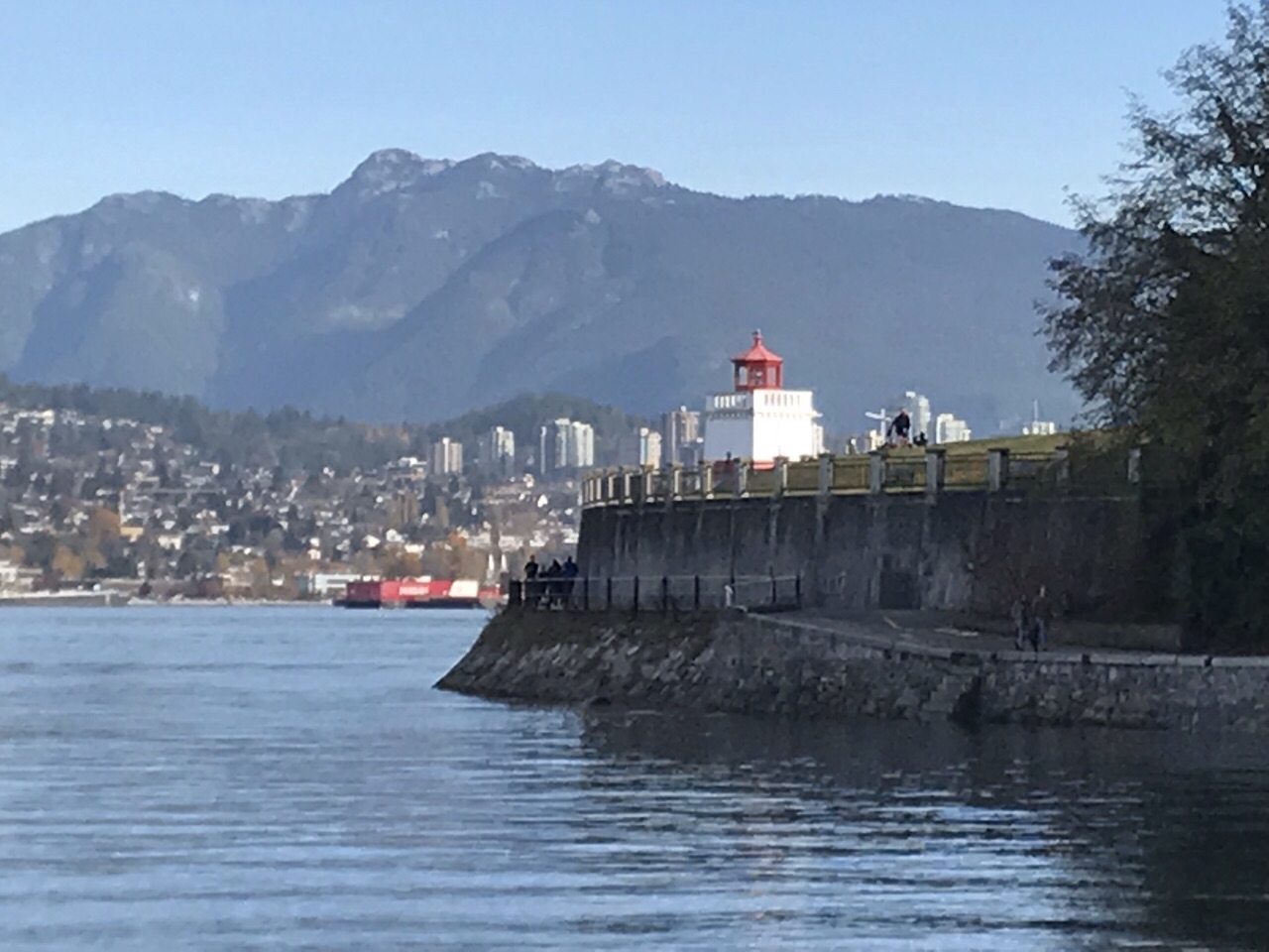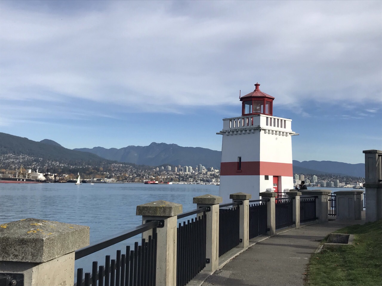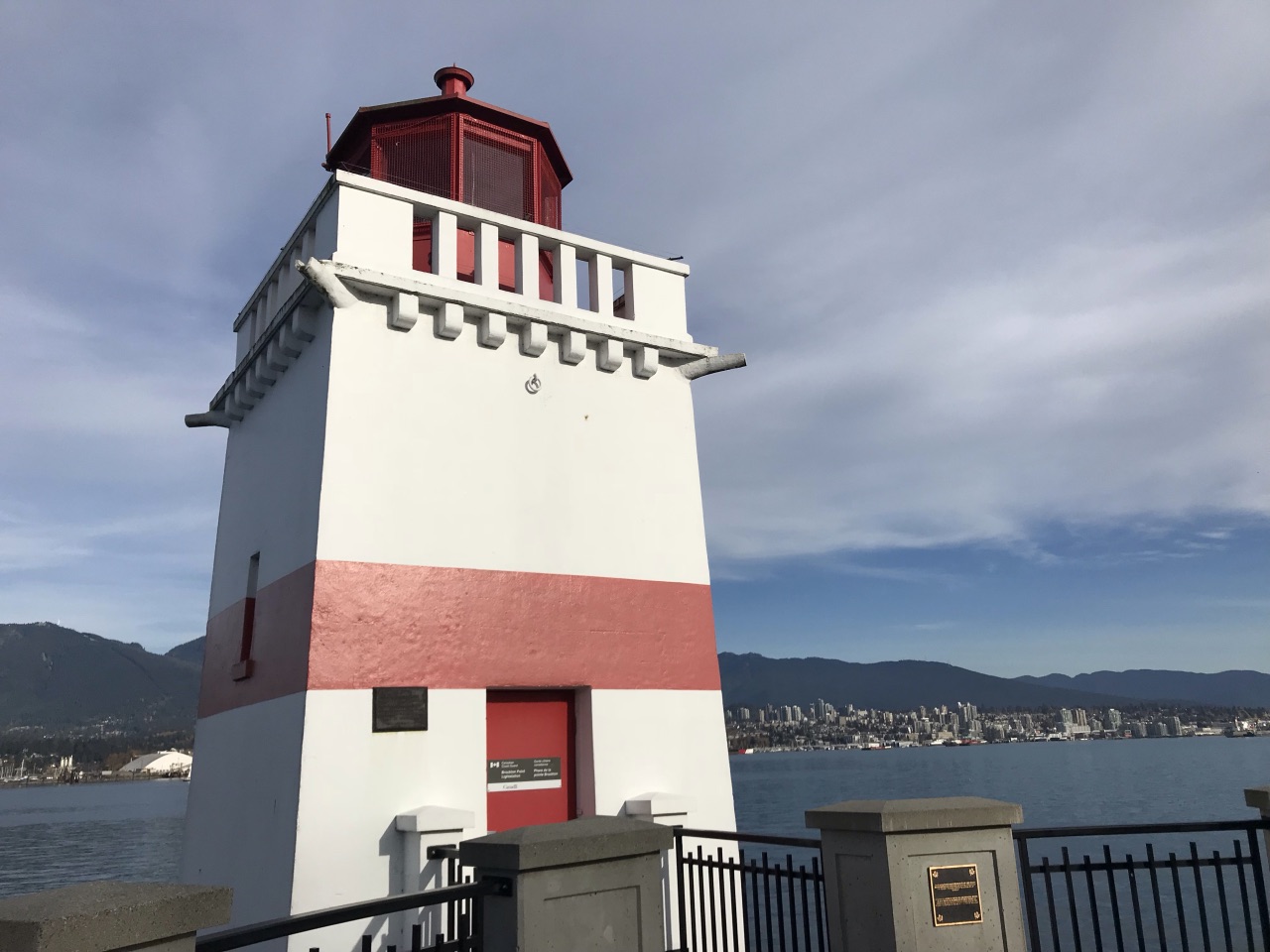 Stanley公园的最东边,有一座百年历史的灯塔,白漆,红纹、红门、红顶