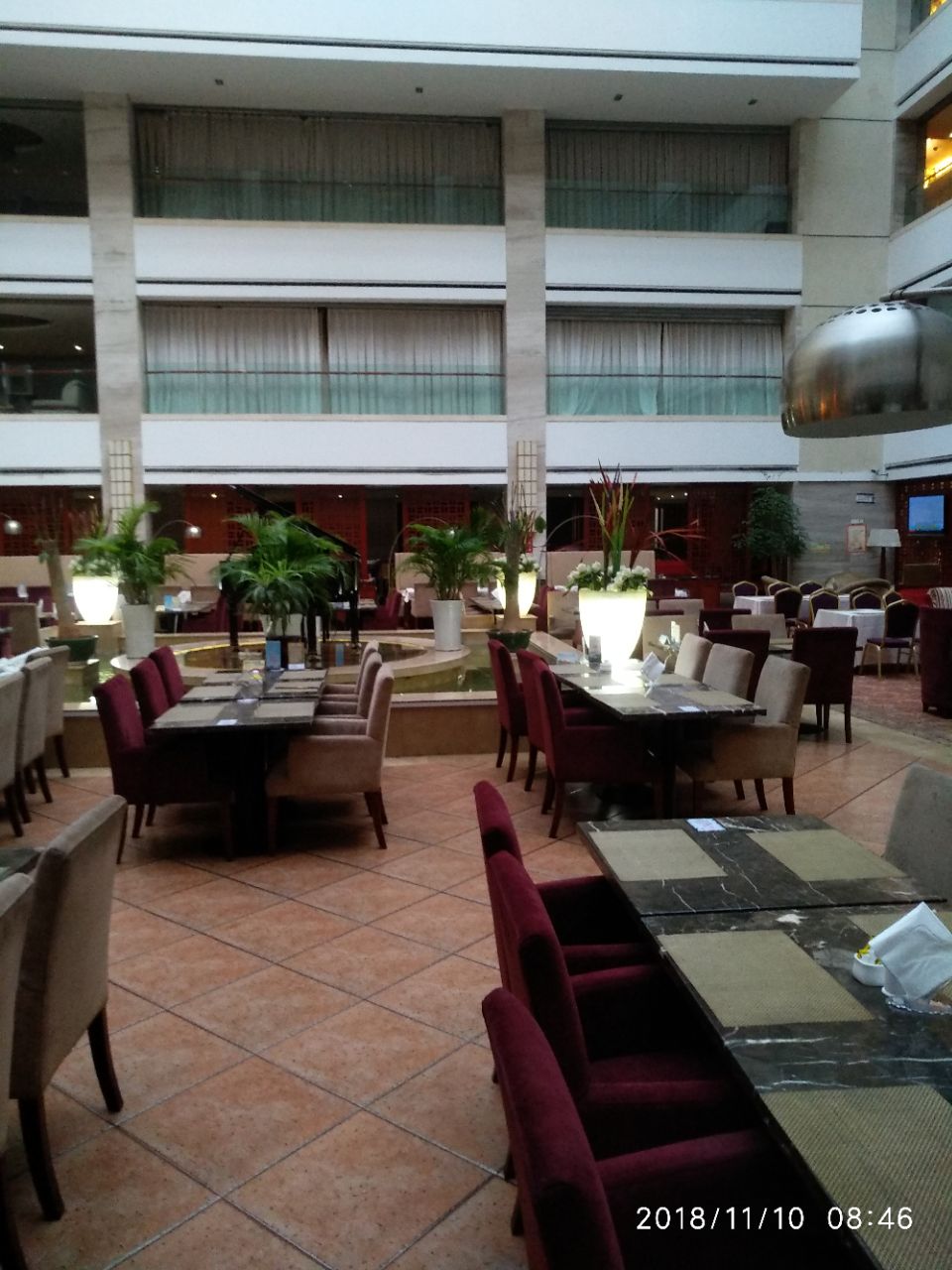 酒店的自助餐厅,位于酒店的一层,看着环境还不错,早餐种类还算齐全,只是口味略显一般酒店的自助餐厅,位于酒店的一层,看着环境还不错,早餐种类还算齐全,只是口味略显一般。而且餐厅内的服务员太少,很多菜已经凉了没有加热。