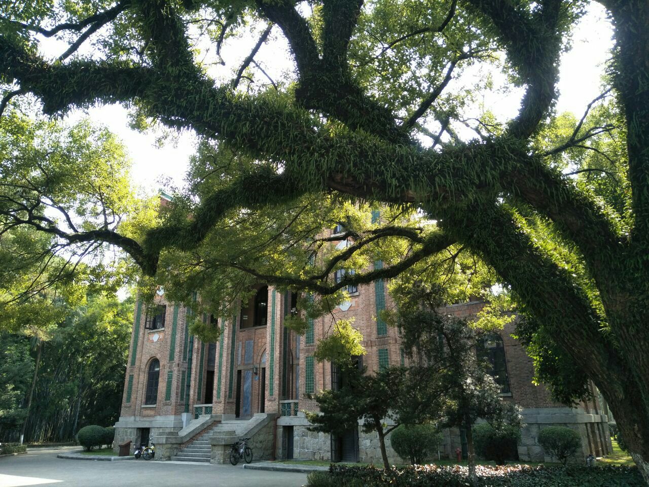 ...、中国古典的屋顶琉璃瓦,墙面却用“红砖”(不同于一般古建筑的大青砖)是和广州的红土地保持一致呢在巨幅榕树的遮掩下,近代建筑显得甚有“民国风”。这种建筑,洋房的设计结构、中国古典的屋顶琉璃瓦,墙面却用“红砖”(不同于一般古建筑的大青砖),是和广州的红土地保持一致呢。